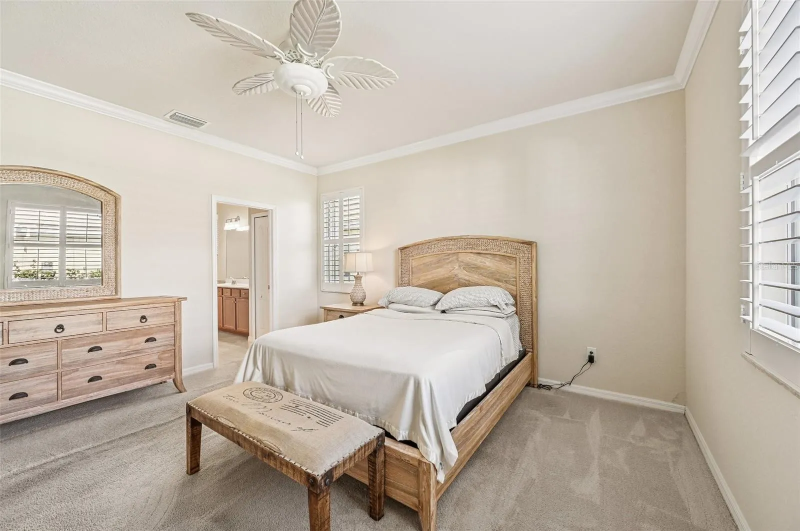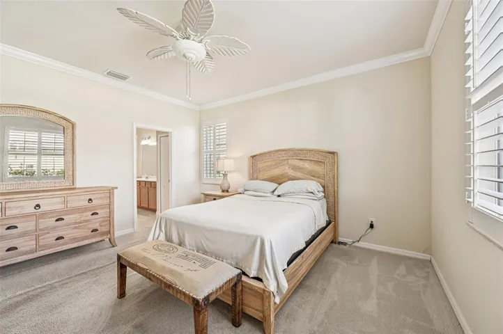 Your vacation does not have to end! This 2016 built 4 BR, 3 BA, 2-car garage home in the gated, maintenance-free resort-style community “The Villas at Charleston Park” comes partially turnkey furnished and will delight you with its open floor plan and abundance of natural light. It features whole house accordion hurricane shutters for peace of mind and Plantation shutters in the main living areas. Enjoy your morning coffee at the granite breakfast bar, overlooking the gourmet kitchen with Maple cabinetry, granite counter tops, stainless-steel appliances, pull-out shelving and a walk-in pantry. Your Great Room and Dining area are ideal to gather with family and friends and the split floor plan allows for privacy. Your Guest bedroom offers an en-suite bath and would make an ideal home office. The 3rd and 4th bedroom share a bathroom with a shower over tub. Your Primary Bedroom Suite features 2 large walk-in closets and the Primary Bath has a garden tub, walk-in shower and double sinks. Step onto your lovely screened lanai for Happy Hour with friends or enjoy relaxing hours in the quiet setting. You will love the Florida lifestyle at the Villas at Charleston Park with its resort-style pool, large sun deck and Clubhouse with fitness room, library and lots of activities for its residents. Close to area beaches, shopping, restaurants & the many amenities of Wellen Park, including the Atlanta Braves Spring Training stadium. Public water & sewer. No CDD! No flood zone!