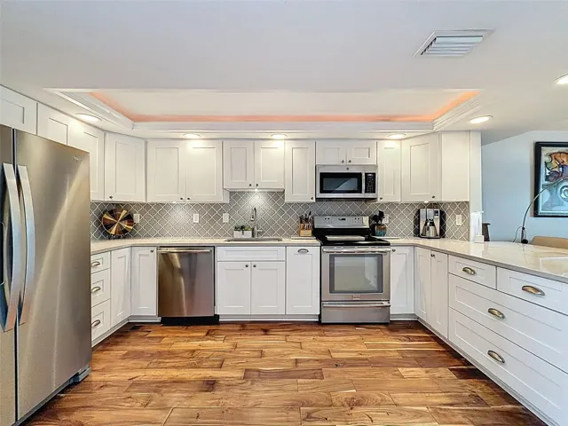 ABSOLUTELY NO FLOOD DAMAGE TO THIS UNIT! Discover the charm of this beautifully updated oasis at South Paula Point, where every day feels like a vacation. This home is available for sale or for rent, offering flexibility to fit your needs. There aren’t many properties like this one that offer this kind of waterfront living. With covered parking on the first floor, head up to the second floor where your front door is located. Inside, rich hand-hewn Acacia wood floors immediately catch your eye and set the tone for the warm and inviting space. The kitchen features quartzite marbled countertops that offer plenty of room for entertaining or preparing your favorite meals. Sunlight fills the living room with a soft glow, creating the ideal spot to unwind. A convenient half bathroom is located on the first floor for guests. Upstairs you will find two ensuite bedrooms, each offering serene water inspired views. The waterside suite looks out over breezy treetops and the vibrant canal below. Two closets span the length of the room, providing generous storage. The ensuite bathroom has been beautifully updated with weathered wood tile floors, a deep soaking tub, glossy subway tile and a quartz countertop. The second suite features picturesque views framed by a wide window that fills the room with natural light. Step onto your shaded patio and enjoy the salty breeze as boats glide by on the canal. From your patio, steps lead directly down to the seawall where peaceful water views surround you. Dolphins and manatees frequently make appearances, giving you a front row seat to true waterfront living. The community amenities are just as impressive. Enjoy a heated saltwater pool during the cooler months along with a gas grill, shuffleboard court and a clubhouse. Kayak and paddleboard storage, along with additional storage units, are available for rent on the east end of the building when available. The location is unbeatable with Honeymoon Island, local beaches, the Pinellas Trail, Publix, Walgreens, marinas, gyms, restaurants, seafood markets, salons and the Jolly Trolley all just blocks away. You will love watching the Dunedin Christmas Lighted Boat Parade gather at The Point as the sun sets behind the glowing boats. The Fourth of July fireworks over the water are absolutely spectacular. This home is ready for you to move in and begin living your Sunshine Dream. BOTH THE MILESTONE AND RESERVE STUDY HAVE BEEN COMPLETED. One elevator is located within the community.