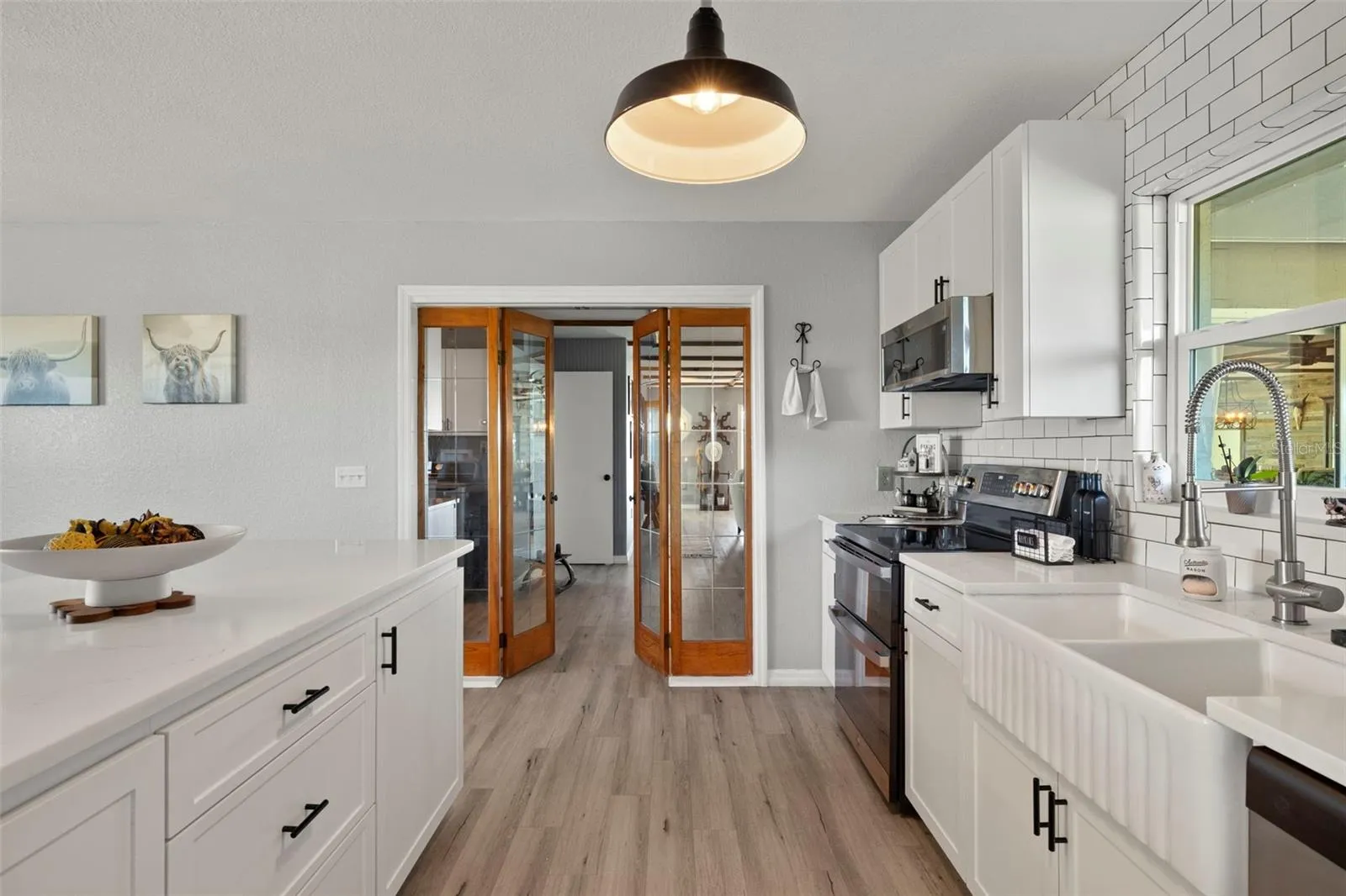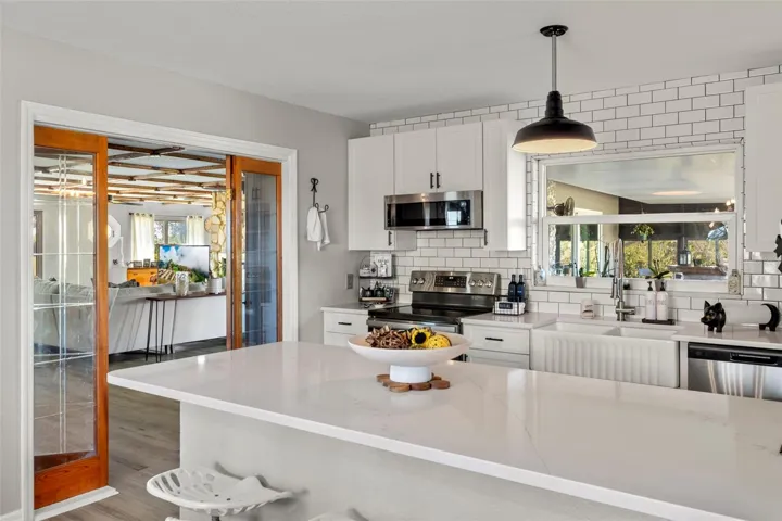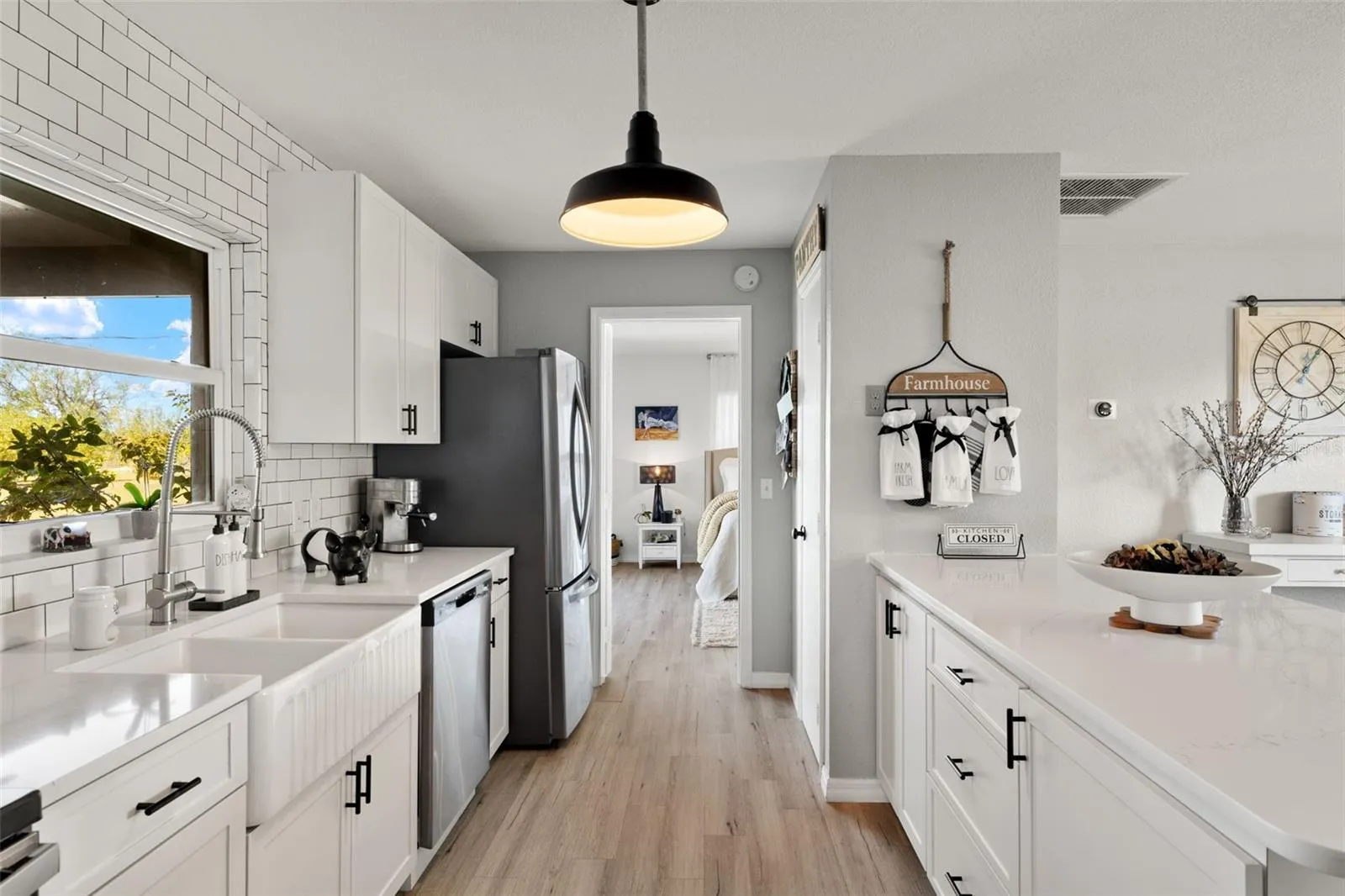 Country Charm Meets Modern Luxury! Welcome to your private oasis! This concrete block, single family home offers the perfect blend of luxury and country charm. Situated on 5 fully fenced acres, this property features a large workshop, greenhouse and tranquil pond, creating a serene retreat with room to live, work and play. Inside you will find 3 spacious bedrooms and 2 baths, a formal dining room and a cozy breakfast area overlooking the peaceful property. The home has been beautifully updated with a new kitchen, featuring custom cabinetry and stainless-steel appliances. Enjoy peace of mind with all new electrical wiring, complete replumbing, updated well equipment and newer AC Unit (16 seer) – every major system has been taken care of for you. The metal roof ensures durability and low maintenance for years to come. Luxuriously decorated with a warm welcoming vibe, this home is ready for its next owner to enjoy. Located in zone X (no flood insurance required!), you can rest easy knowing your home is safe and secure. Whether you are looking for space to garden, a place to have your horses or simply a quiet country escape, this property has it all. Schedule your private showing today and experience country living at its finest!