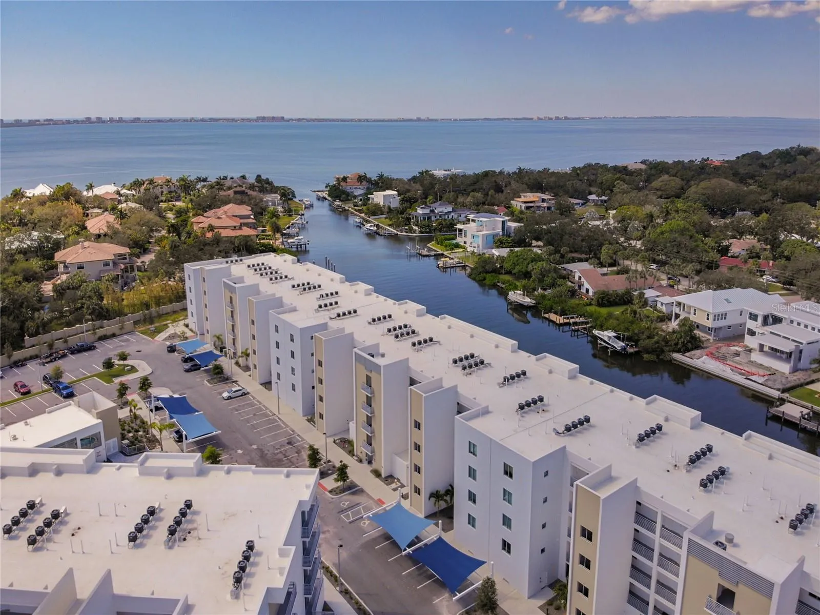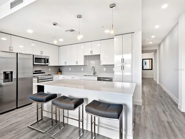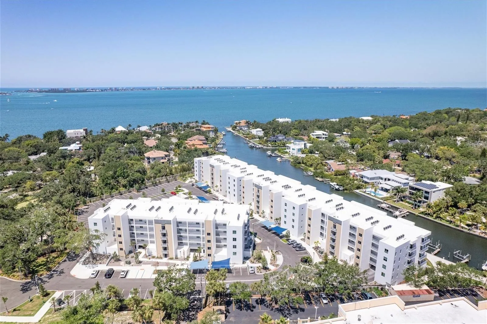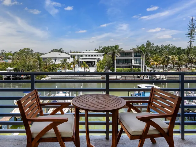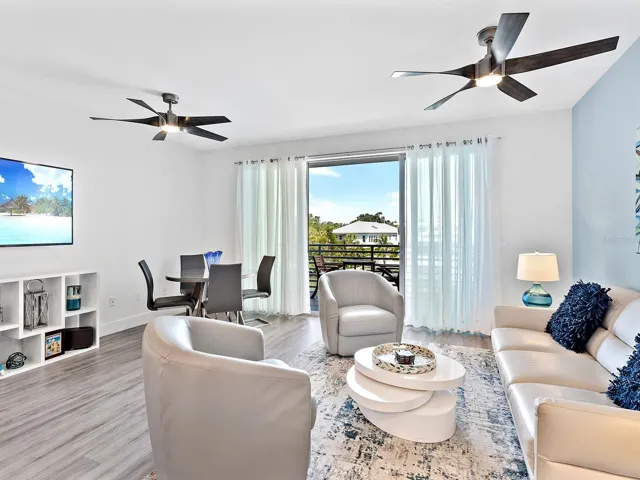 Lowest priced unit in The Strand with direct open water views! Experience waterfront luxury with direct water views and boating lifestyle at The Strand. With over 1,300 square feet, this modern turnkey-furnished unit, completed in 2022, offers unparalleled views and amenities. Great value expansive end unit features hurricane-rated sliding glass doors, showcasing breathtaking water views and vibrant wildlife. Inside, the kitchen, dining and living areas are designed for elegance and functionality. Upgraded glossy white cabinets and quartz countertops complement a spacious island with modern lighting and breakfast bar. The great room offers two sets of sliding glass doors flowing to the large balcony for entertaining or casual gatherings while overlooking amazing sunsets and water views. The primary bedroom boasts a large walk-in closet with custom organizers and a luxurious en-suite bath with upgraded tile, quartz countertops and a glass shower door. A versatile den with barn doors can serve as a second bedroom or office, complete with large triple closet and a pullout sofa. Modern amenities throughout, including luxury vinyl plank flooring, stylish lighting fixtures, Alfa-organizing systems in all closets, impact glass windows and doors, completely turnkey furnished with high-end furnishing including flat screens, large laundry room with added storage cabinet, upgraded ceiling fans and light fixtures, and more. Great unit with a seven-day rental minimum. The Strand offers more than just a home, it’s a vibrant community with pet-friendly amenities, a resort-style heated pool and spa, a well-equipped gym and even car charging stations. Enjoy community gas grills, a gas fire pit and convenient access to a floating dock for kayaking. Plus, with weekly rentals allowed, it’s an excellent choice for full-time residents, part-time dwellers or investors alike. Near Sarasota’s best waterfront parks and just minutes from downtown, St Armands, Lido Beach, restaurants, entertainment venues and parks. The Strand combines luxury living with easy access to beaches, dining, cultural venues and outdoor activities. Whether you’re seeking a permanent residence or a vacation retreat, this is an opportunity to indulge in Sarasota’s renowned lifestyle. Don’t miss out on the chance to make The Strand your new home and schedule your showing today. Owner is a licensed REALTOR® in Florida, and the property is not homesteaded.