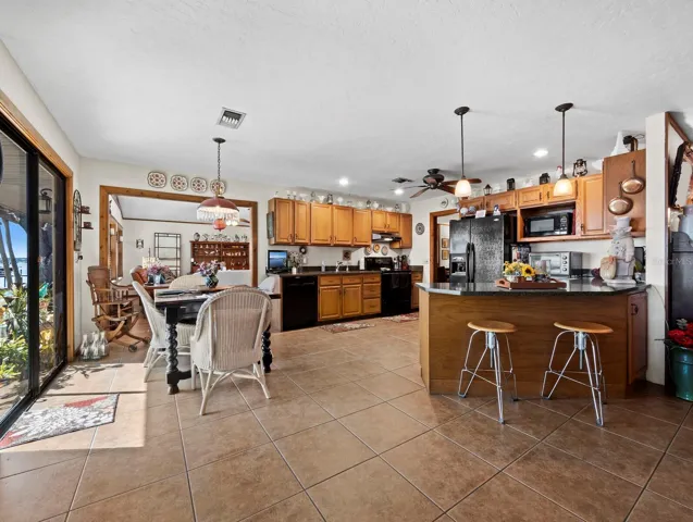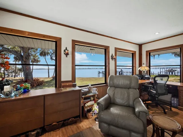 A rare offering of a 3 bedroom, 2 bath home situated on over half an acre of a tree lined oasis on the open river!! Can you just imagine waking to this view every day?! This home is currently listed almost $200,000. under appraised value!! The idyllic setting invites peace and serenity, making it a perfect retreat from the bustle of everyday life. It is tucked away down a private road and yet you are just a short easy drive to I-75, and to multiple restaurants, shopping, and entertainment. Meticulously maintained, this home offers gorgeous views from almost every room. As you enter up the interior steps, you are immediately greeted with a large open front room and three large windows open to the amazing views. A beautiful formal dining area sits to your left. The home is over 2400 square feet and allows a family to spread out and have their own space or to come together in comfort in the large eat in kitchen that opens to the great room. Multiple areas are here to enjoy the stunning view…..a breakfast bar, a cozy spot in front of the stone fireplace, another dining table with sliders out to the riverfront patio….and green space surrounded by lush gardens and stately trees before you even step out on the long dock which ends in a deck you may never want to leave. Come and see this true Florida oasis and experience the joys of riverfront living for yourself.