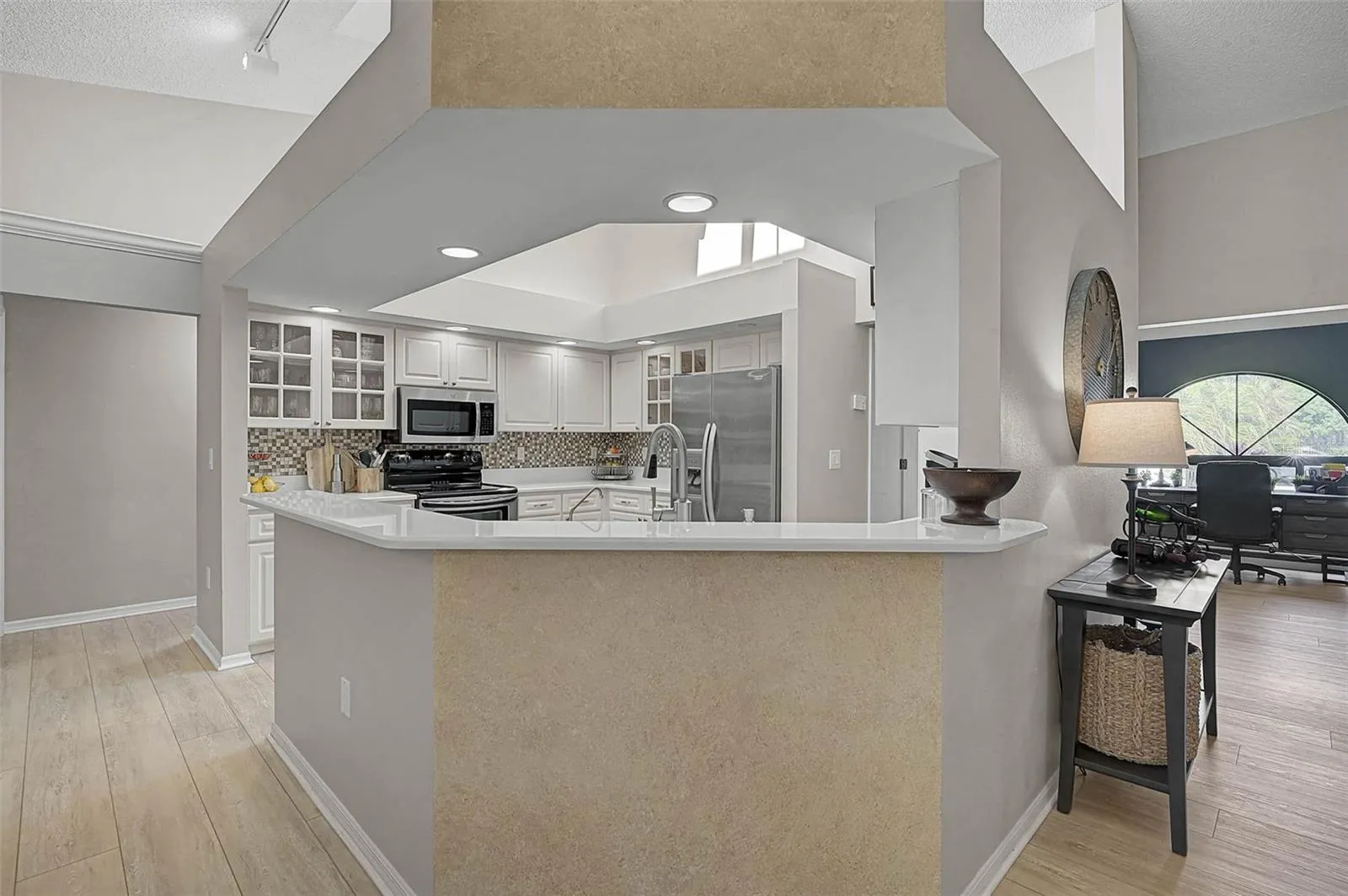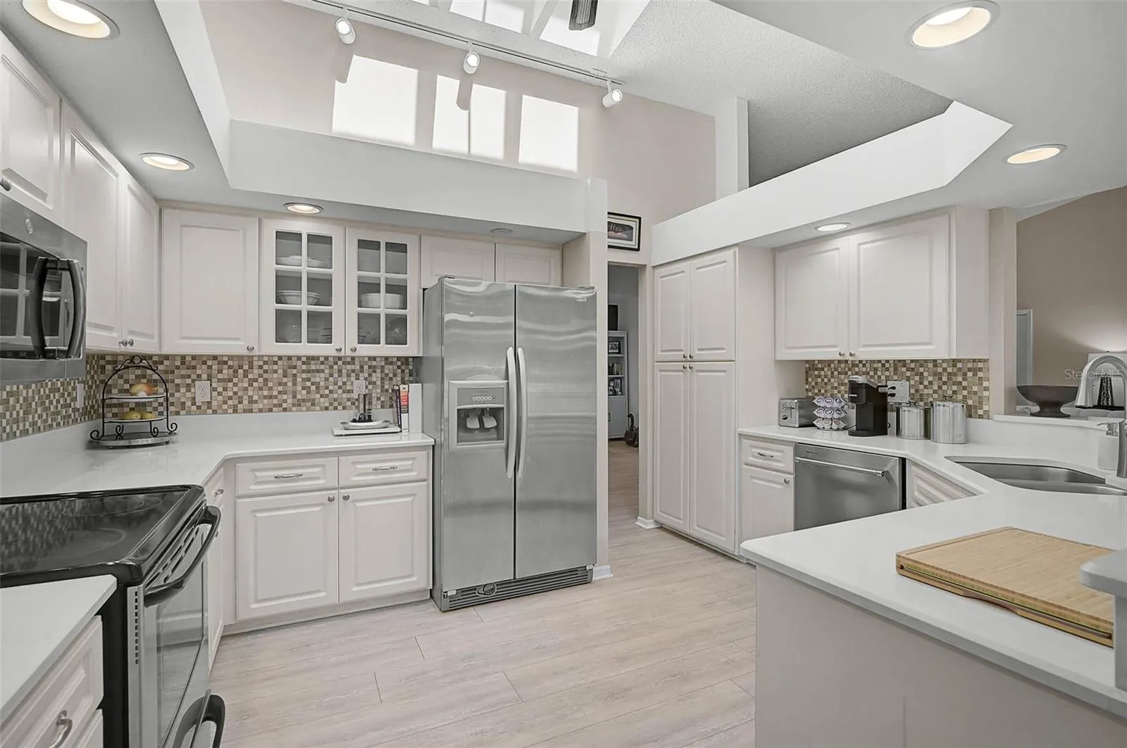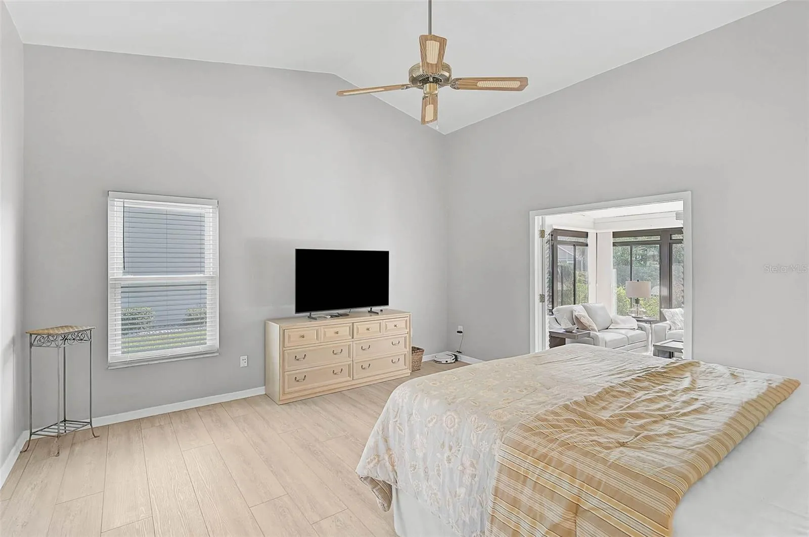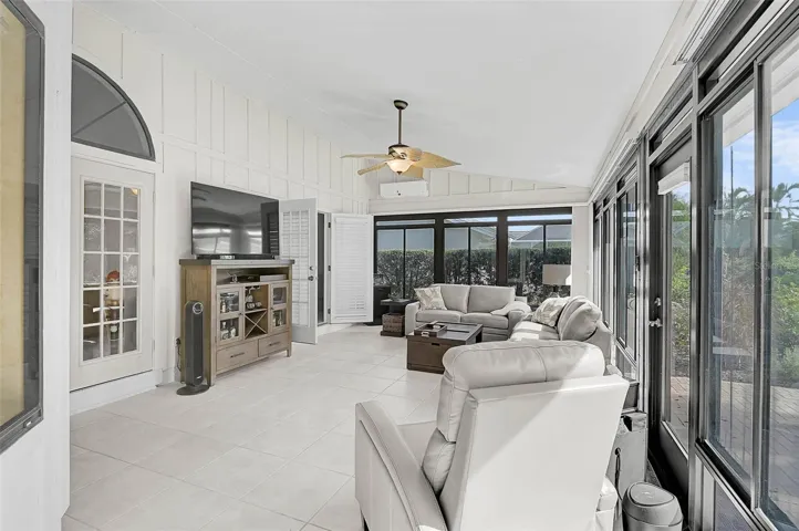 Gorgeous, Model-Perfect 3BR/2BA plus Den home on a Private Corner Lot! Step into this stunning home offering 2,512 square feet of beautifully designed living space. The entry welcomes you with a striking wood beam ceiling, adding warmth and architectural interest, creating a grand first impression. Situated on a quiet corner lot, the private backyard includes a paver courtyard, organic garden, and plenty of space for a pool—ideal for entertaining or relaxing in style. Inside, engineered wood floors flow throughout, creating warmth and elegance. The primary suite is a serene retreat with dual walk-in closets and a spa-like bathroom featuring dual sinks, a soaking tub, and a separate shower. High ceilings enhance the open, airy feel throughout the home. The enclosed lanai, accessed through three sets of French hurricane doors, features hurricane-protected windows and a new split A/C unit for year-round comfort. The kitchen is bright and inviting with new skylights (2024), a tile backsplash, new dishwasher, and a Culligan reverse osmosis system under the sink. Recent upgrades also include a new roof (2024), new hot water heater, new washer and dryer, and new garbage disposal, making this home completely move-in ready. Additional features include a Hydrawise irrigation that is Wi-Fi accessible, a water softener, and a cozy wood-burning fireplace in the living area. Peridia offers an active lifestyle with an executive 18-hole golf course, tennis, pickleball, heated pool, tiki bar, restaurant & bar, and pro shop. Ideally located, this home is close to shopping, airports, restaurants, and some of the best beaches in Florida, offering both convenience and lifestyle. Additional Fees: $938 quarterly master association fee, $450 annual food/beverage minimum, $100 one-time application fee, $4,000 one-time capital reserve.