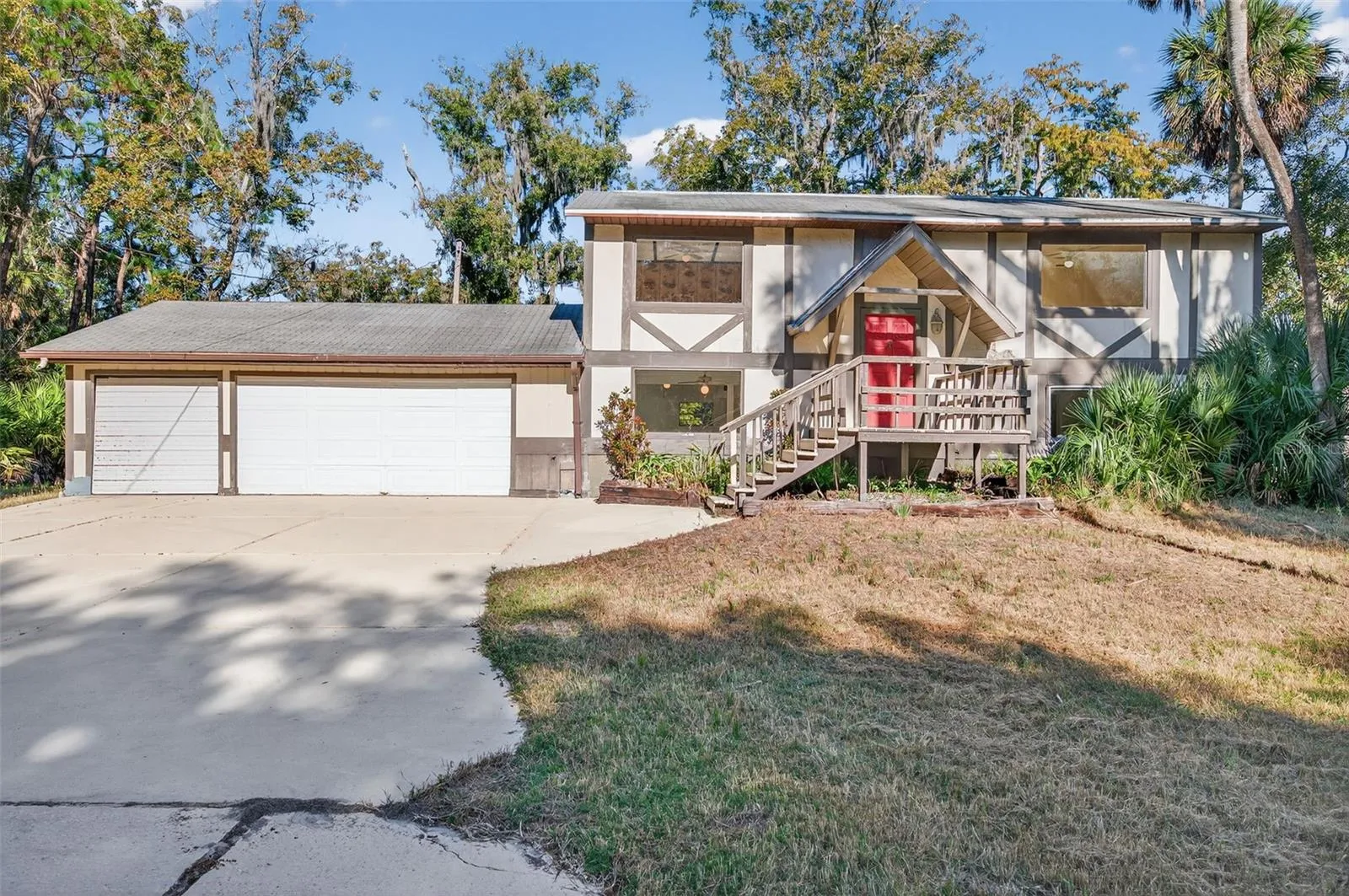 WELCOME TO THE MOST UNIQUE PROPERTY IN PASCO COUNTY at 6345 Lost Trail, Holiday, FL. This AMAZING .76 acre property is a HIDDEN GEM with virtually untouched, PRIME WATERFRONT of about 880 feet of ANCLOTE RIVER. Get away from the hustle & bustle & come EXPLORE the properties offered for sale the first time in decades at LOST TRAIL. The pictures of this RIVER landscape do not do justice as this land is simply indescribable. Some of the countless TROPICAL plants include a pair of MAJESTIC royal palms, bromeliads, bamboo & banana. The 2-story block home features 5 bedrooms, 2 bathrooms & a MASSIVE garage of 36’x24′. The 864 sqft garage can be easily converted to an in-law suite/separate apartment. The laundry hookups are in the garage & there is a back door exit. You’ll LOVE the design of the etched front door & the A-frame covered front porch with wood deck landing. The kitchen, living room, dining room, primary bedroom & bathroom are all found on the 1st level. There is a utility closet & a hall closet with a water heater (manufacture date 4/2019) on the first level too. The second level features 4 SPACIOUS bedrooms each with a ceiling fan & a built-in closet. One of these bedrooms has glass sliders to a wooden deck/balcony overlooking the river. The full bathroom consists of a tub/shower combo & a linen closet with an additional coat closet in the loft/landing. The sweet seller used to host outdoor parties & guests would DIVE into the river as some areas of the river are 20-30ft deep! Manatees, otters, plentiful fish, deer, turkey & even a bobcat call this area home. The property features a wooden dock at the water, a BOAT LAUNCH (currently overgrown), rock steps to the river & a GIGANTIC concrete pad for parking of all your vehicles like cars, work trucks, boats, kayaks, jet skis, RV. Roof is 5/2004. The adjacent parcel of 50.5 acres to the north is owned by Copperspring CDD so it is going to stay as undeveloped land adding to the privacy of the LUCKY NEW OWNER. Are you a buyer with a vision for the potential of this GREAT OPPORTUNITY? The seller owns 3 adjacent parcels for a total of 4.5 acres & an UNHEARD of 1,605 feet of Anclote River front which meanders eventually to the Gulf of Mexico!! Combine it with adjacent 1-acre property at 6331 Lost Trail for a 5.5 acre property that can be developed as a private residence or potential commercial development. MAKE THIS YOUR FUTURE HOME!