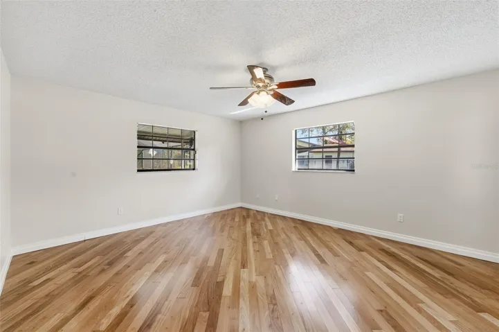 This upscale Community 3-bedroom, 3-bathroom, 2-car garage huge pool and separated Heated spa home sits on a desirable corner.58 acre lot in the sought-after River Country community. The landscaping offers low-maintenance curb appeal. Featuring a formal living room, dining room, family room, and a built-in bar—perfect for entertaining. Long last hardwood flooring runs throughout most of the home, with tile in the kitchen and bathrooms. The thoughtfully designed three-way split bedroom floor plan provides both functionality and privacy even for an in law suit with private paradise exit to full bathroom . The kitchen boasts custom cabinetry, granite countertops, and stainless steel appliances. Step outside to enjoy a screened in-ground pool and heated spa, a separate screened roof area ideal for cooler days, and a large semi covered epic fish pond ready for your fish collection. Recent updates include a new roof (2023), new pool pumps (2025), new spa heater (2025), pool resurfacing (2025),HVAC (2021), Electric water Heater (2025)and fresh exterior & exterior paint (2023). it’s ready for you. Located in River Country, a deed-restricted community with very low HOA fees of just $125 annually, residents enjoy access to amenities including a park, grill area, gazebo, basketball court, and tennis courts.