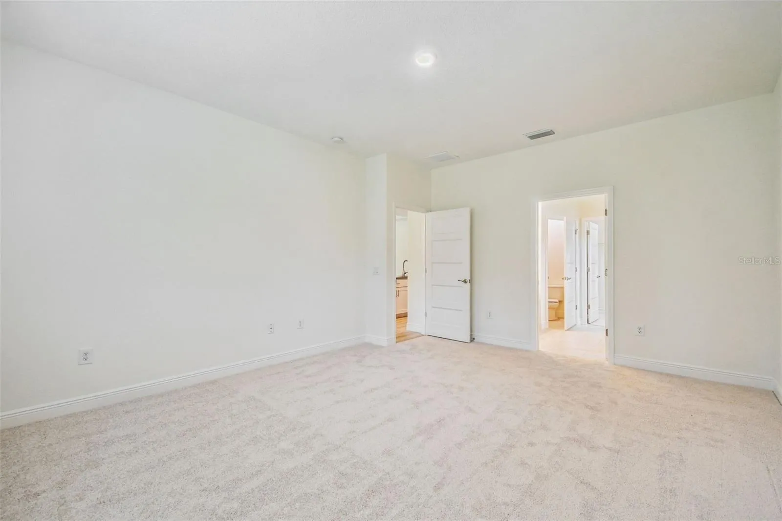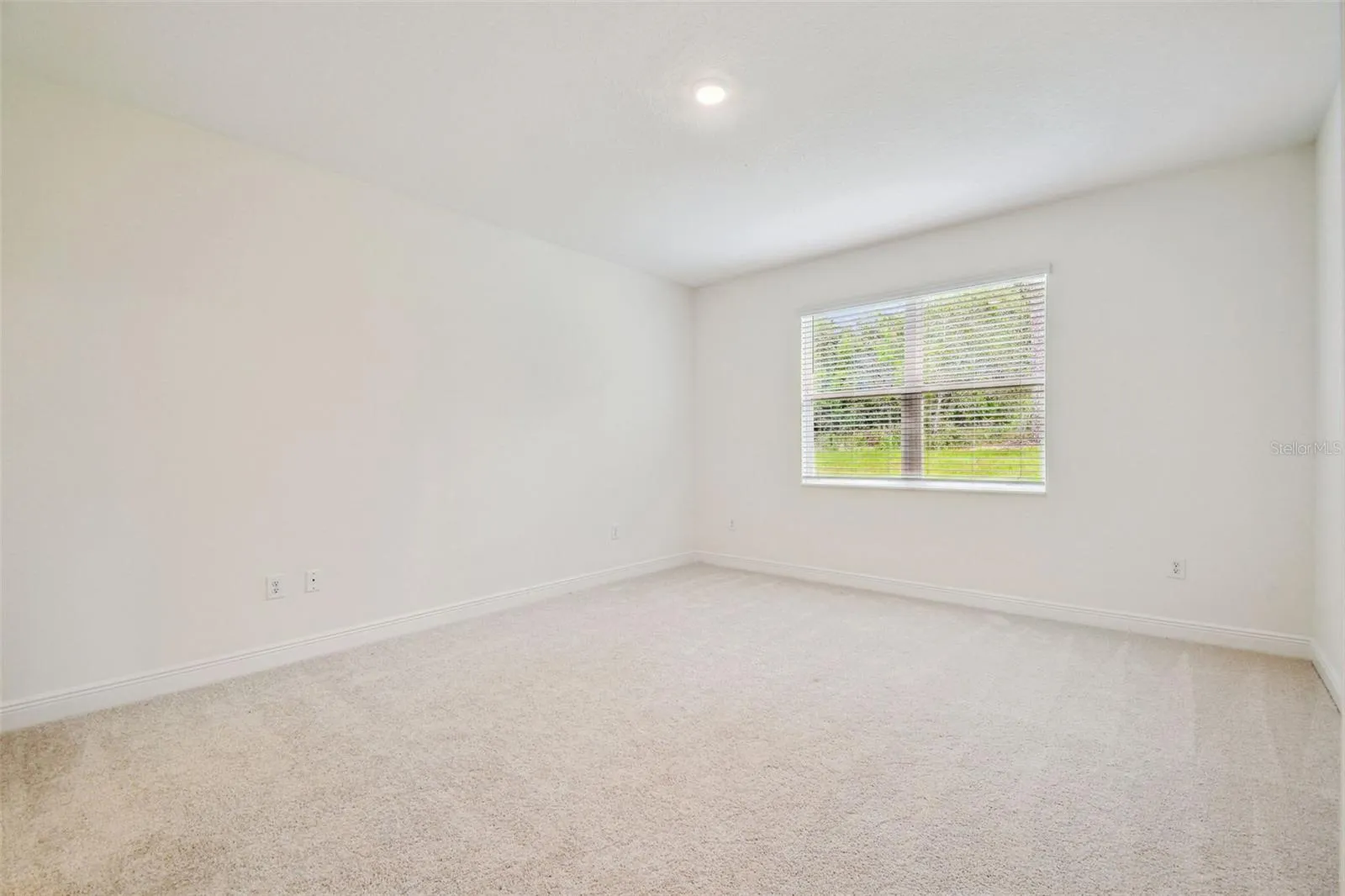 Guest bedrooms are thoughtfully placed to ensure privacy, while a tucked-away laundry room provides additional storage and functionality. Finishes throughout the home include plush carpeting in bedrooms, and timeless tile in all wet spaces.