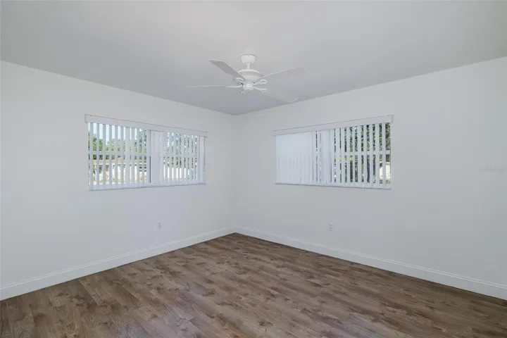 This clean and convenient corner-lot home offers 2 bedrooms, 1 bathroom, a bonus room, and a well-appointed kitchen with a full set of stainless-steel Samsung appliances. The fully fenced backyard, enclosed with vinyl privacy fencing, includes an oversized shed. The laundry room sits in the fully screened side lanai, complete with pull-down blinds that allow you to see out while keeping prying eyes away. A double driveway adds to the home’s many conveniences. Located just far enough from US19 to stay peaceful, it’s still close to shopping, restaurants, parks, beaches, and medical centers. With professional lawn care included by the landlord, you get the best of both worlds—enjoying the privacy of a single-family home without the hassle of the yard work that typically comes with it!