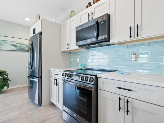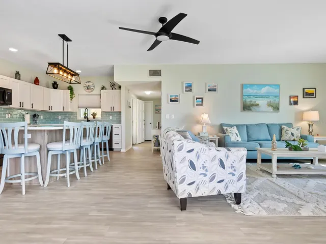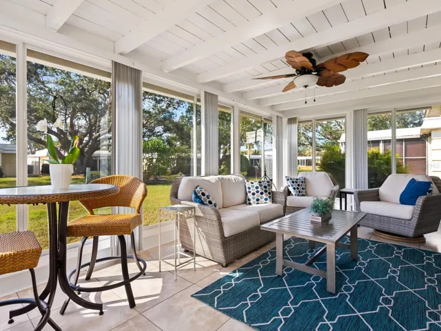 No storm damage, no water intrusion. HOA fee covers hurricane insurance. Welcome home to this West-of-Trail, beautifully updated, two-bedroom and two-bath villa in the desired waterfront community of Baywood Colony. This villa has been thoughtfully and stylishly renovated from top to bottom, including a complete kitchen renovation (2023), new air conditioner (2025), hurricane windows (2025), HVAC (2019) and new laminate floors (2023). The owners spared no expense for the kitchen remodel and completed extensive work to create an open floor plan. This location is ideal, just two miles from Siesta Key Beach access and a few blocks from the Phillippi Estate Park. Baywood Colony is sought after for its desirable location among luxury waterfront homes and features its own waterfront park for fishing and sunset strolls. The clubhouse and community pool offer an active social calendar for residents.