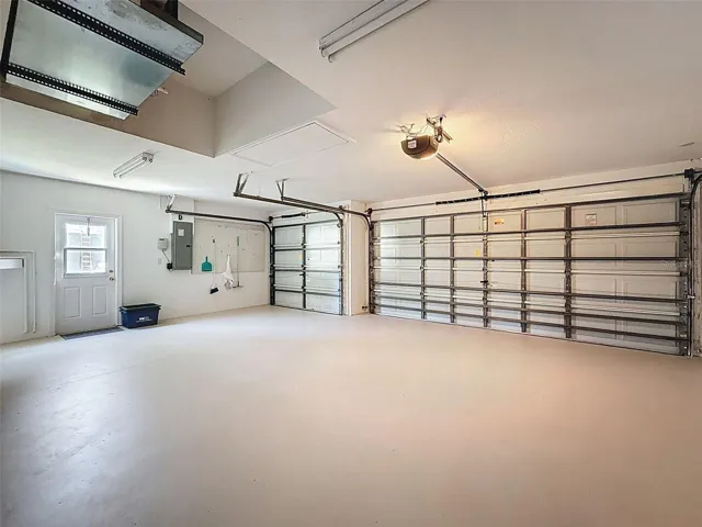 Past the kitchen toward the front of the house is a convenient pantry and a tidy laundry room with a utility sink. A skylight-lit hallway leads to the oversized freshly painted 2½-car garage, providing excellent storage, workspace, or room for larger vehicles.