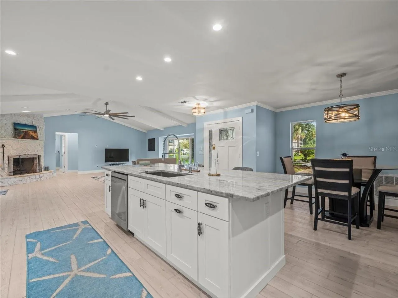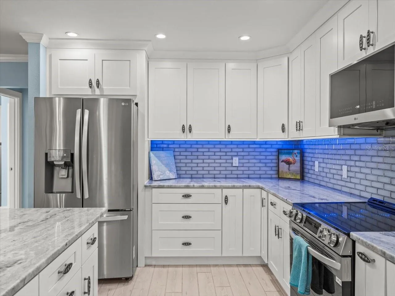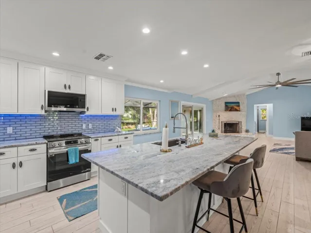Step inside to a move-in ready home filled with thoughtful upgrades. The fully remodeled kitchen features brand-new cabinets, countertops, refrigerator, dishwasher, microwave, and range—ideal for cooking and entertaining. Both bathrooms boast stylish new vanities and countertops, while every room has new ceiling fans for comfort. Additional improvements include new interior doors and hardware, updated plumbing and electrical outlets, and a French door off the master suite. A washer and dryer on pedestals add convenience to your stay.