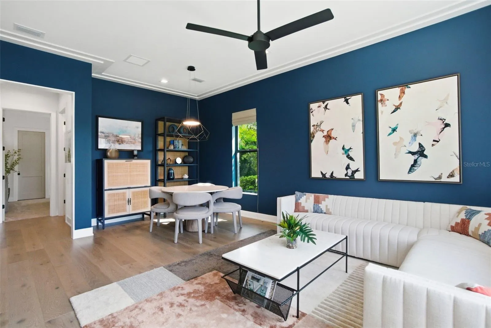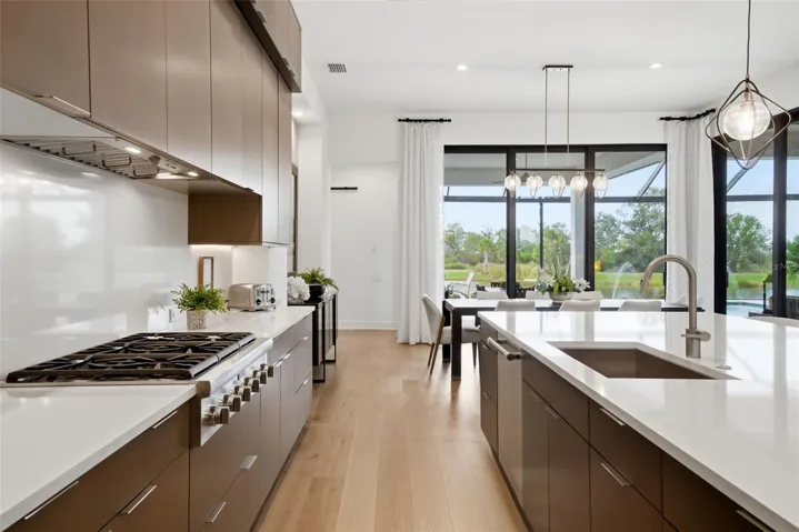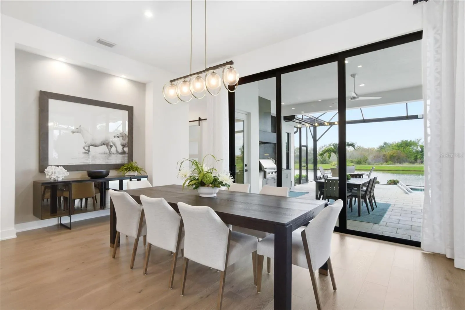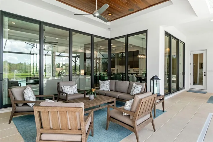 Experience the elegance and craftsmanship of this stunning, fully furnished custom AR Homes former model, showcasing refined details and designer finishes throughout. A stately glass entry door sets the tone for the open-concept layout, featuring real wood flooring, soaring ceilings with custom beams, and abundant natural light. Located within the amenity-rich Star Farms community at Lakewood Ranch, residents enjoy access to on-site restaurants, a resort-style pool, pickleball and tennis courts, fitness facilities, and much more.