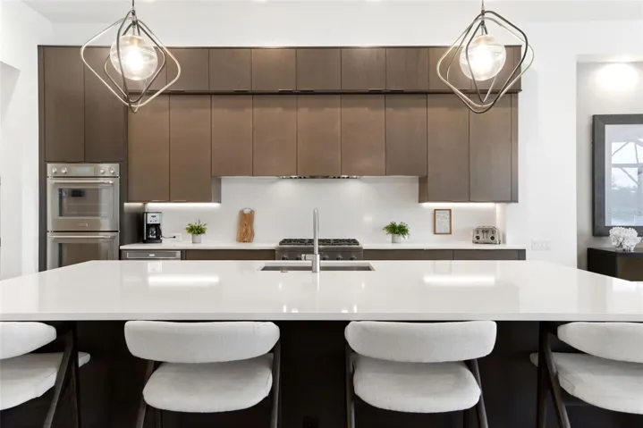 The chef’s kitchen is an entertainer’s dream with a hidden butler’s pantry, extra-large island, drawer pull-outs, and professional-grade Thermador appliances. The luxurious primary suite offers a serene retreat with double custom walk-in closets, triple tray ceiling with designer lighting, and a spa-like bath with a steam shower.