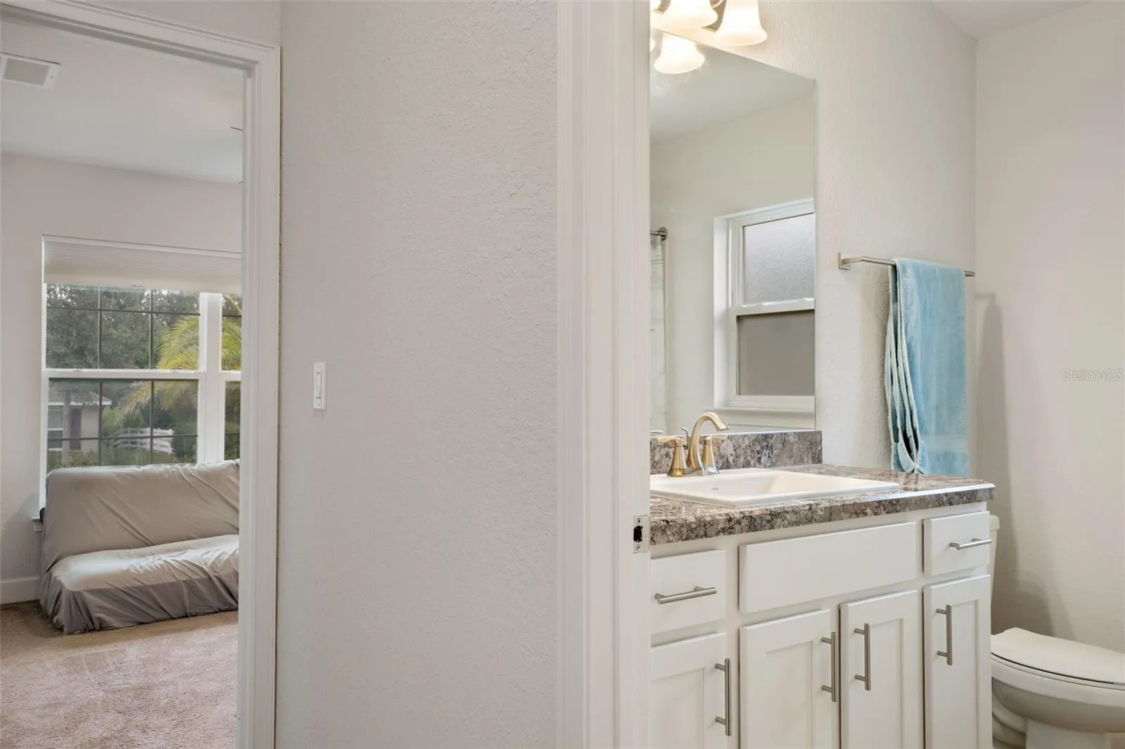The split layout includes two comfortable guest bedrooms with a full guest bath. A convenient laundry room offers extra storage and organization.