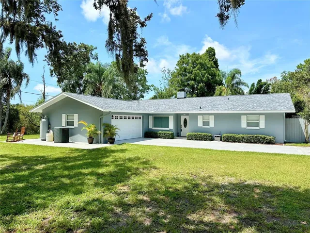 Make the move to this peaceful 2-Acre Estate in Golden Acres is ready to go! Nestled in the sought-after Golden Acres community, this upgraded 3-bedroom, 2-bathroom home offers the perfect combination of privacy, versatility, and modern comfort—with no HOA and ER zoning that permits livestock, chickens, and more. Set on a tranquil 2-acre parcel situated along a 3-acre spring fled lake, the home boasts an open-concept layout featuring travertine flooring, upgraded windows, an inside laundry room, and a fully renovated kitchen with granite countertops and updated appliances. Both bathrooms have been tastefully remodeled, and every window captures peaceful views of the surrounding green space. The 2-car garage offers outstanding usability with dual garage doors, maximizing access and functionality. Key mechanical updates include a brand-new roof (2025), A/C (2017), new well pump, and new septic drain field—providing peace of mind for years to come. A standout feature is the detached, 3-stall air-conditioned barn, complete with power and water—perfect for equestrian needs, hobby farming, or workshop use. Plus, recent zoning updates now allow for an Accessory Dwelling Unit (ADU) up to 1,200 sq ft (please verify specifics with the county). Whether you’re envisioning a private homestead, multi-generational living, or simply more space to thrive, this Golden Acres gem delivers the freedom and flexibility to create your ideal lifestyle.(ROOF-2025)(A/C-2017)(W/H-1999)(WEEL PUMP-2024)(SEPTIC- DRAIN FIELD-2024)Seller pays $870 per year for flood insurance