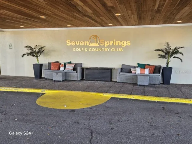 Welcome to Seven Springs Golf & Country Club, a vibrant and active community that is not a 55+ neighborhood. The location is outstanding—about 30 minutes from the international airports in Tampa, Clearwater, and St. Petersburg. The community offers excellent amenities, including two pools (an adult pool and a large heated family pool), a workout room, clubhouse restaurant, and two premier golf courses. This is a very desirable end-unit Heritage model with a spacious outdoor patio and plenty of natural sunlight throughout. The unit was fully renovated about five years ago and features 2 bedrooms and 2 bathrooms, soft-close cabinets and drawers in the kitchen and baths, stainless steel appliances, tile floors in the wet areas, wood-look flooring throughout, and granite countertops in both the kitchen and bathrooms. The primary bathroom includes dual sinks and a stylish countertop storage cabinet. The home also includes a laundry closet and a pantry for added convenience. Two pets are allowed. This community has one of the lowest golf and country club HOA fees in the area, which covers the 24-hour guard gate, cable TV, internet, water, sewer, trash, insurance, pest control, reserves, exterior maintenance, grounds maintenance, and management. It’s also an easy and beautiful walk to the clubhouse and restaurant.