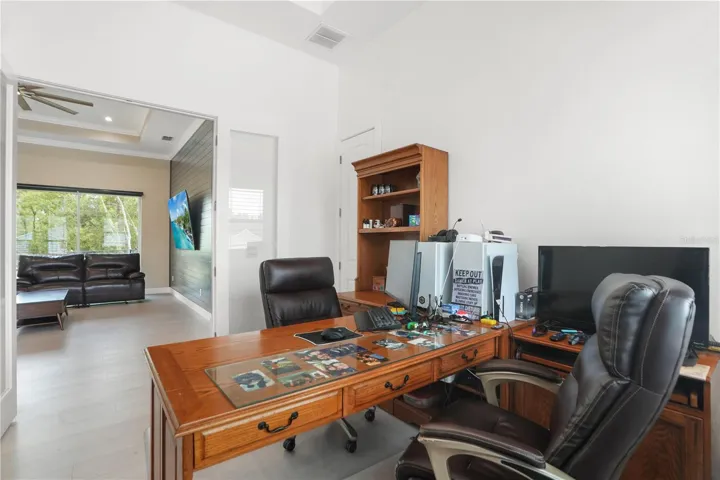 WELCOME TO THIS NEWLY BUILT (COMPLETED JANUARY 2025) ONE-OF-A-KIND CUSTOM-BUILT HOME, SURELY TO IMPRESS! THE CAPTIVATING STUCCO WORK ALONG WITH THE STONE AND PAINT COLORS WILL MAKE YOUR HEAD TURN ALONG WITH THE LARGE DRIVEWAY AND 3 CAR GARAGE. THE GRANDEUR OF THE FRONT ENTRY ADDS TO THE CURB APPEAL. ONCE YOU WALK THROUGH THE LARGE DOUBLE DOOR ENTRY YOU WILL SEE THE HIGH CEILINGS WITH CROWN IN FOYER AND MAIN LIVING AREA THAT ADD A TOUCH OF SOPHISTICATION. THE LARGE KITCHEN HAS LG APPLIANCES AND SOFT-CLOSE DOOR CABINETS WITH GRANITE COUNTERTOPS AND YES, A LARGE ISLAND, AND DON’T FORGET THE COFFEE BAR, THERE IS ALSO A LARGE WALK-IN PANTRY WITH CUSTOM BUILT SHELVING. SHIPLAP HAS BEEN INSTALLED TASTEFULLY THROUGHOUT THE HOME. THERE ARE PLANTATION SHUTTERS AND MOTORIZED SHADES TO GIVE YOU PRIVACY. THE LARGE OWNERS SUITE HAS A DOUBLE DOOR ENTRY, THERE IS PLENTY OF ROOM FOR ALL YOUR FURNISHINGS AND HAS A SINGLE DOOR TO THE BACK PORCH, THERE IS ALSO 2 WALK-IN CLOSETS, BATHROOM HAS TWO SINKS, A TUB AND THE WALK-IN SHOWER OFFERS A REJUVENATING EXPERIENCE WITH ELEGANT TILE WORK AND CRYSTAL-CLEAR GLASS. THIS HOME HAS TWO MORE LARGE BEDROOMS, ONE HAS ITS OWN EN SUITE BATHROOM. THERE IS ALSO A STUDY/DEN THAT COULD BE USED AS A 4th BEDROOM. DON’T FORGET THERE IS A LARGE LAUNDRY ROOM WITH A LINEN CLOSET. THE MUD ROOM HAS A STYLISH CUSTOM-BUILT BENCH FOR PUTTING OR TAKING OFF YOUR SHOES WITH STORAGE COMPARTMENTS AND HOOKS FOR HANGING THINGS. THERE IS LVP FLOORING THROUGHOUT HOME AND TILE IN BATHROOMS. THE GARAGE, FRONT ENTRY AND BACK PORCH ALL HAVE EPOXY FLOORS. GUTTERS HAVE BEEN INSTALLED, ALL DOORS ARE 8-FOOT DOORS, BACKYARD IS FULLY FENCED. AC HAS UVGI LIGHT INSTALLED IN AIR HANDLER. ALL THIS AND MORE ON JUST OVER AN ACRE OF LAND. OH AND DID I MENTION NO HOA’S OR CDD? SCHEDULE YOUR SHOWING!