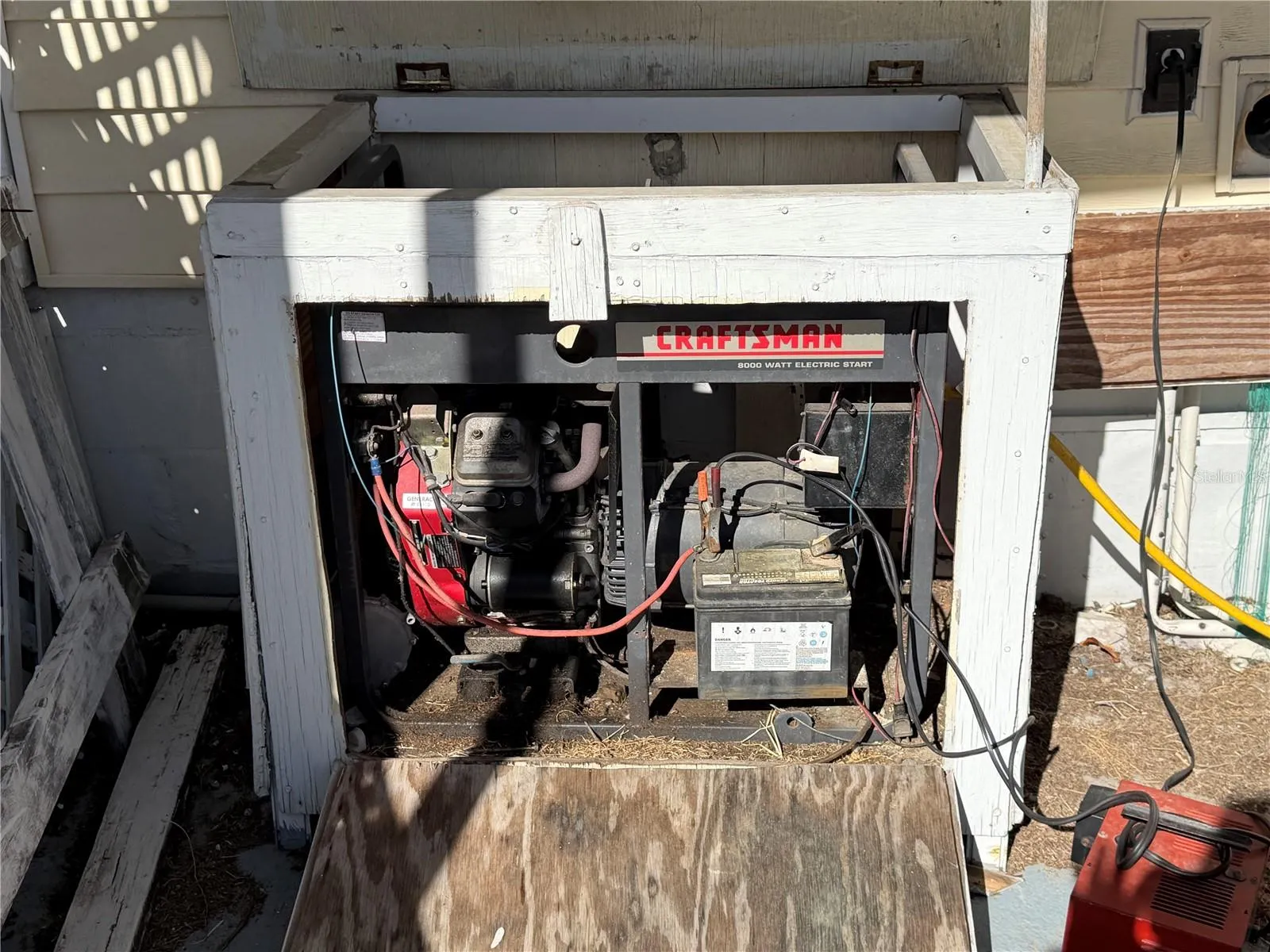 The home features 3 bedrooms, each with a walk-in closet, a large Florida room, and indoor laundry with storage shelves, work space, and a dedicated hot water heater for the washing machine. The kitchen includes wood cabinets, a breakfast bar, and newer appliances. A 100-gallon propane tank powers the range, dryer, and the included generator.