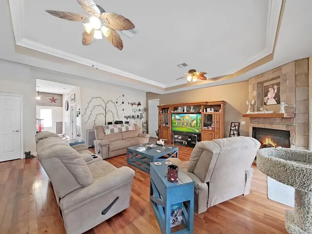 GORGEOUS 2007 NON-SMOKING 2-STORY POOL HOME WITH 3,210 SQ FT OF LIVING ON 1.79 FENCED ACRES OF LAND WITH ELECTRIC GATED ENTRANCE WAY. AS YOU ENTER THE HOME, THERE IS A BEAUTIFUL OAK STAIRCASE THAT LEADS UP TO THE LARGE LOFT/BONUS ROOM WITH A VAULTED CEILING, AND THE 2ND & 3RD BEDROOMS WITH A JACK & JILL BATHROOM. DOWN STAIRS IS A HUGE KITCHEN WITH SOLID MAPLE CABINETS, SOLID SURFACE COUNTER TOPS & BREAKFAST BAR. SEPERATE DINING ROOM WITH TRAY CEILING, LARGE INSIDE LAUNDRY ROOM & OVERSIZED 2 CAR GARAGE WITH OVERHEAD STORAGE. LARGE LIVING ROOM WITH CULTURED STONE PROPANE FIREPLACE, WOOD FLOORS, TRAY CEILING & CROWN MOLDING. LARGE MASTER BEDROOM WITH 2 WALK-IN CLOSETS, TRAY CEILING, CROWN MOLDING & WALL MOUNTED ANIMAL RUN. THE ENSUITE HAS A GARDEN TUB, SEPARATE SHOWER & PRIVATE WATER CLOSET. 10′ CEILINGS THROUGHOUT DOWNSTAIRS, 34 SOLAR PANELS WITH 25 YEAR WARRANTY, 65 GALLON HYBRID HOT WATER HEATER, NEW 50 YEAR ROOF 2023, 1 NEW AC 2020, 2ND NEW AC 2021, REFINISHED 28’X14′ POOL 2025 WITH IN-GROUND JACUZZI, & ABOVE GROUND JACUZZI, NEWER POOL CAGE & PARTIAL 4″ INSULATED PORCH CEILING WITH CEILING FANS. SOLAR ROOF FANS IN ATTIC, POLY HURRICANE PANELS, WHOLE LOT SECURITY CAMERAS, & SPRINKLER SYSTEM ON WELL. HOME IS ON COUNTY WATER & THERE ARE 5 OUT BUILDINGS & A CARPORT. 1) 24X20 ALUMINUM ROOFED POLE BUILDING. 2) 20X20 ALUMINUM ENCLOSED GARAGE WITH 18′ REMOTE DOOR & 6′ DOOR. 3) 15X20 WOODEN & METAL ROLL-OUT BUILDING. 4) 10X12 ALUMINUM SHED. 5) 11X13 ALUMINUM SHED. 6) CARPORT CANOPY – WALL MATERIAL POLY/NYLON & 1 1/2″ METAL TUBING WITH TARP ROOF. FRUIT TREES INCLUDE APPLE, CHERRY, MULBERRY, & GRAPEFRUIT, BLUEBERRY & BLACKBERRY BUSHES. CALL BEFORE IT’S GONE!