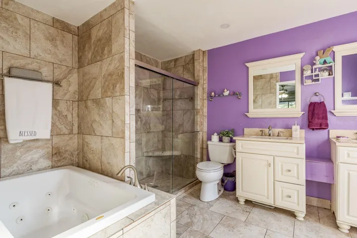 Inside, you’ll find a desirable split floor plan with a large primary suite that includes a separate soaking tub, walk-in shower, and ample closet space. The home also features a wood-burning fireplace located in a separate cozy living area near the kitchen, perfect for gathering on cooler evenings. The converted garage provides a true fifth bedroom, office, or flex space, making this home ideal for multigenerational living, remote work, or guest accommodations. A BRAND NEW roof adds peace of mind and long-term value.