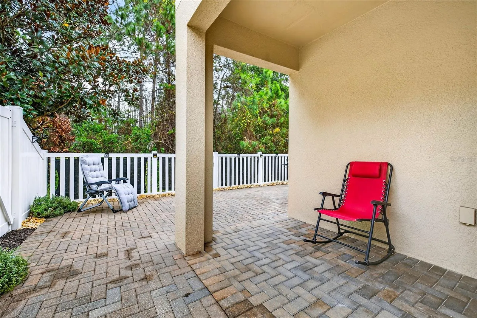 Enjoy outdoor living on the partially covered, fenced-in patio—ideal for al fresco dining or soaking up the Florida sunshine. A private garage adds convenience and extra storage.
