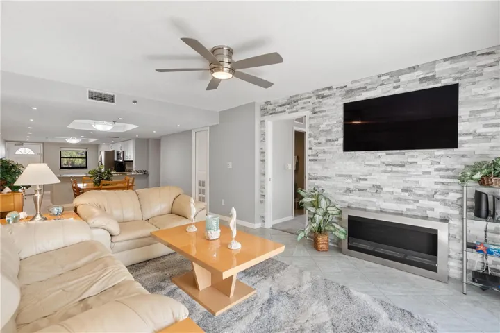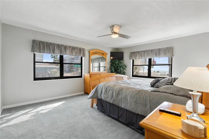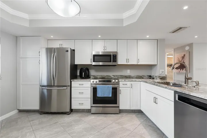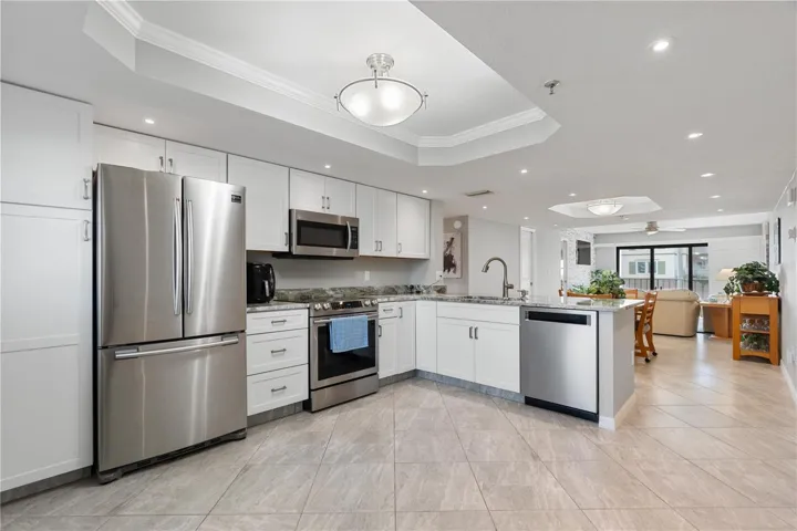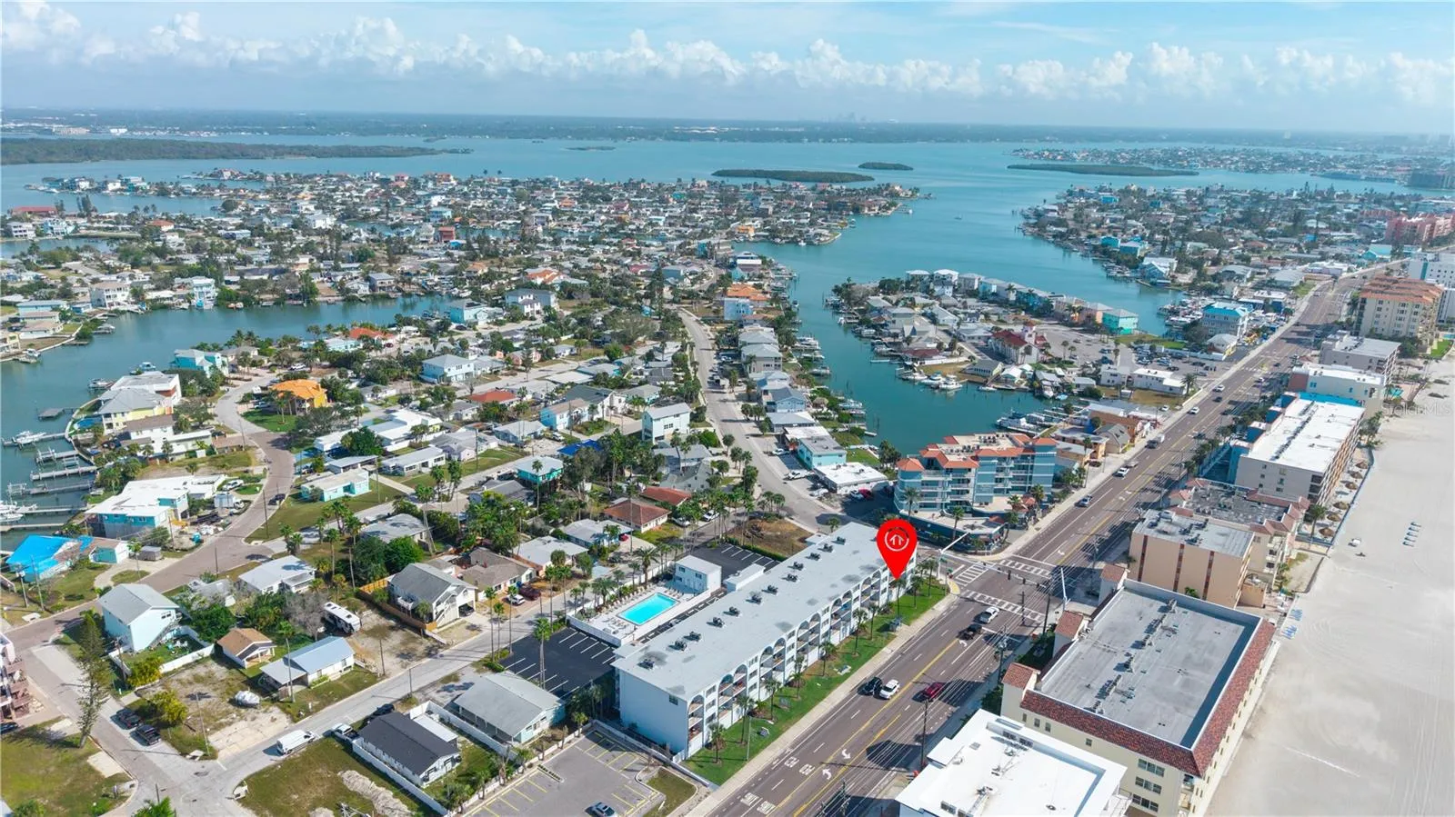 Welcome to this End Unit 2 Bedroom 2 bathroom completely remodeled condo in the Heart of Madeira Beach. Enjoy Gulf views from your living room and balcony. Entering the 2nd floor unit is a Gorgeous Kitchen with white cabinetry, stainless steel appliances and Granite countertops. You will love the tray ceiling, recessed lighting and the Cabinet pantry for storage. There is a space for your breakfast bistro table. The dining area is defined by another tray ceiling. The living room allows you to relax in elegance with a a beautiful light grey stone wall and smokeless liquid fireplace. The hurricane rated slider opens to the front balcony with Beautiful Gulf Views. The primary bedroom has a walk in closet with built-ins and a 5 star rated bathroom with glass enclosed shower new vanity, quartz counterriots. The second bedroom is big enough for 2 queen beds and has a walk in closet. The queen sized sofa sleeper allowing 8 guests people to sleep! Great for Air BnB or short term rental. There is a stackable washer and dryer by the second bathroom that has also been totally renovated. The AC is New in 2025. Pocket doors replace the interior doors. 2 storage units on the ground floor are transferred with the unit to hold all your beach items! The roof was replaced in 2024 and the pool has been completely updated. You get the community pool, cabl,internet, water, swer, trash pest control and Building insurance. This is one of the extremely limited 2 bedroom units to come on the market. Whether you day to day home, vacation home or short term rental you will LOVE this condo in Madeira Beach.