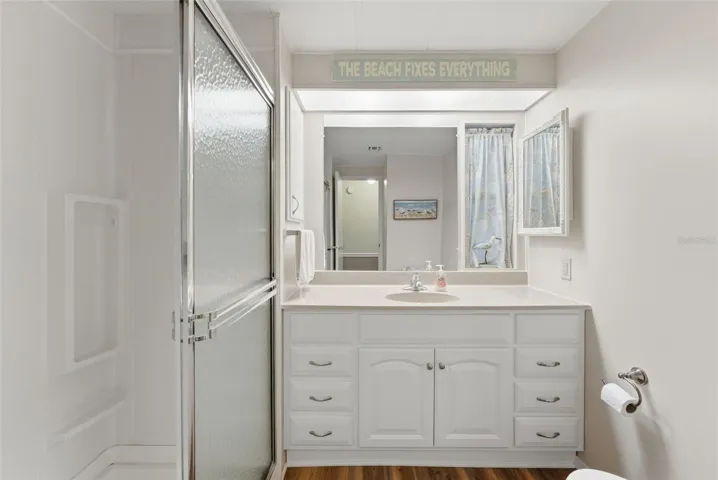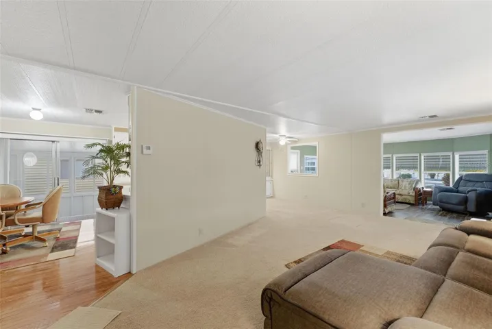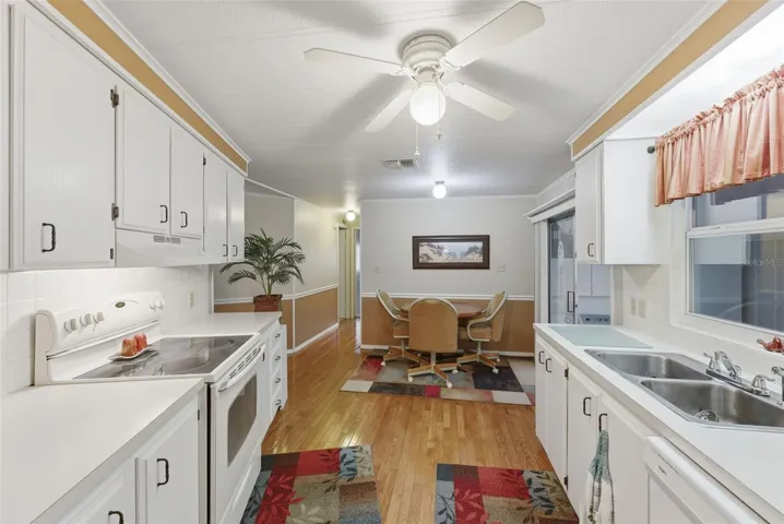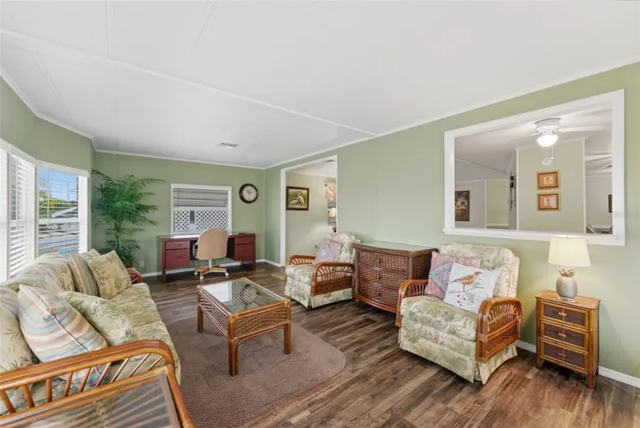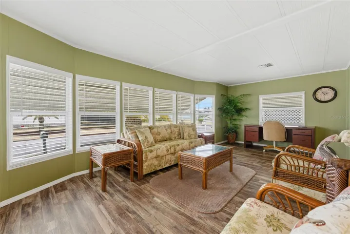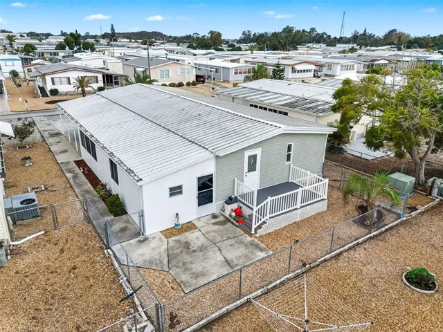 Move-in Ready and spacious 2 bedroom 2 bath home in desirable Ponderosa Park, close to shopping, restaurants, Gulf Beaches and an easy ride to Tampa Airport. This Community offers an amazing heated pool, active clubhouse, on-site community office, bocci and shuffleboard, all for only $250 per YEAR, and you own your land!! No Lot Rent! This home is super clean, and loaded with upgrades, including metal roof-over, enclosed workshop, easy care gravel lawn, screened lanai, awnings, upgraded windows, and best of all, mostly furnished! Out back, enjoy the custom built raised deck and relax!! Everything in the photos are included in the sale!! Inside, there’s loads of room, with 1394 square feet of living space, huge living area, central kitchen, cavernous primary suite, all appliances including washer and dryer, luxury plank flooring, meticulous paint throughout, No reason to look any further, this home has it all!!