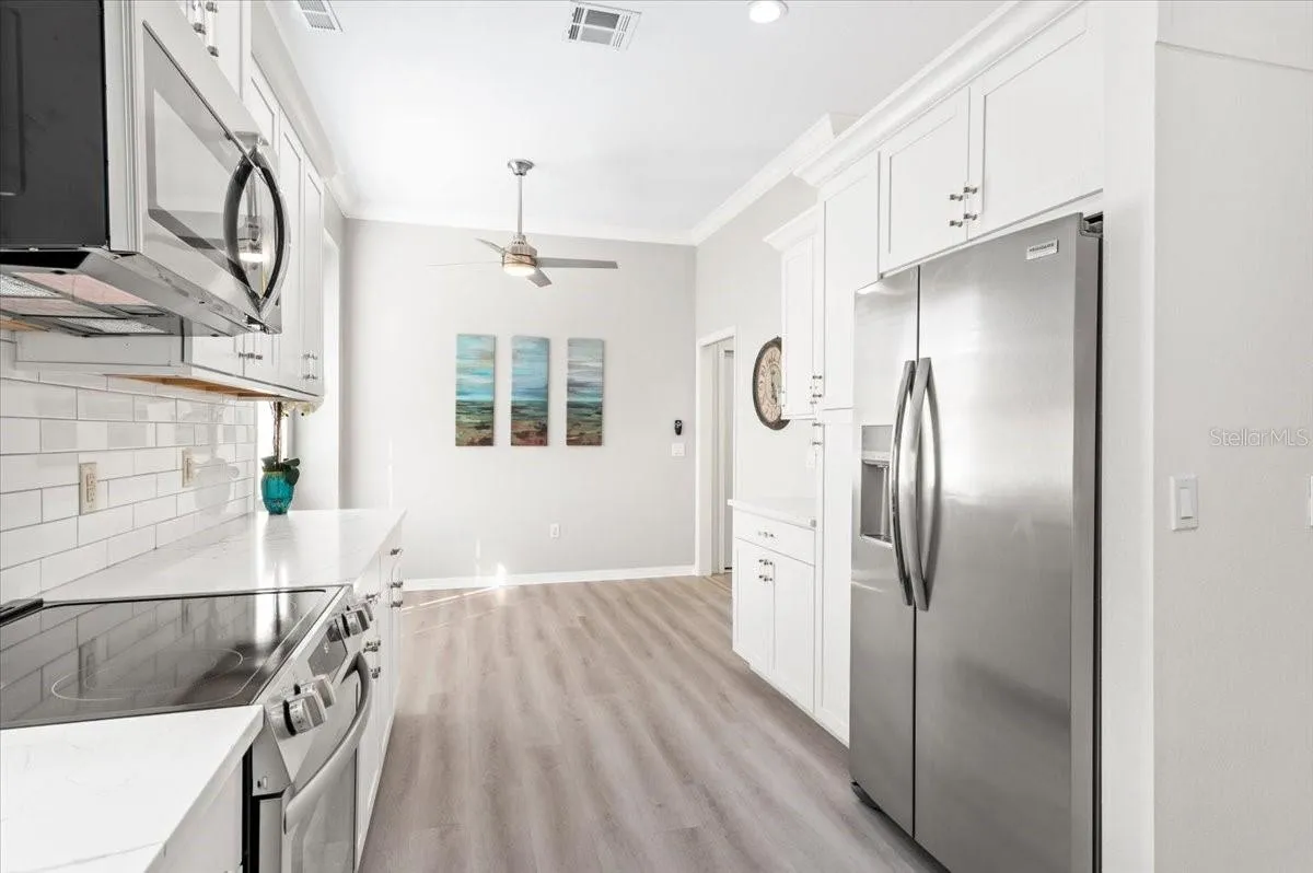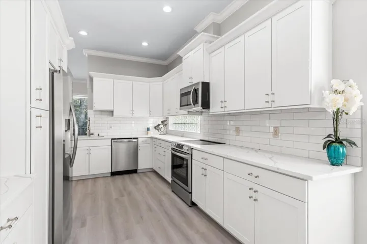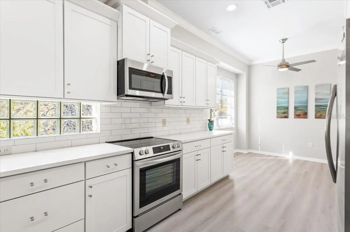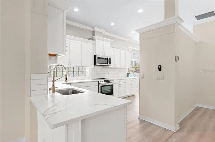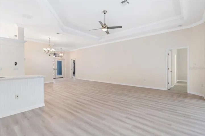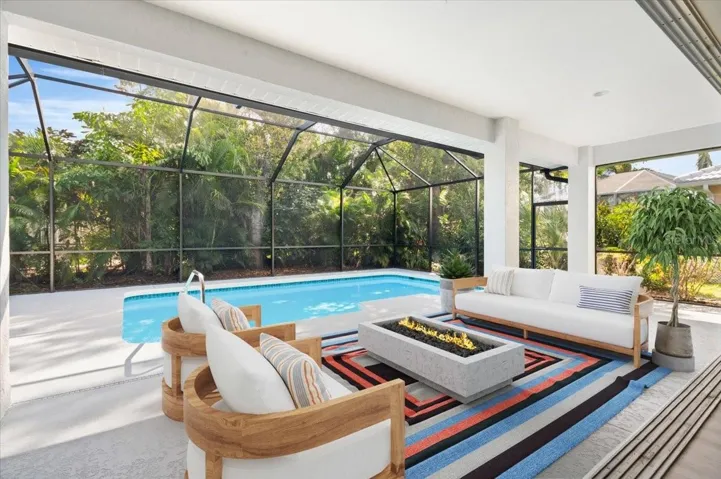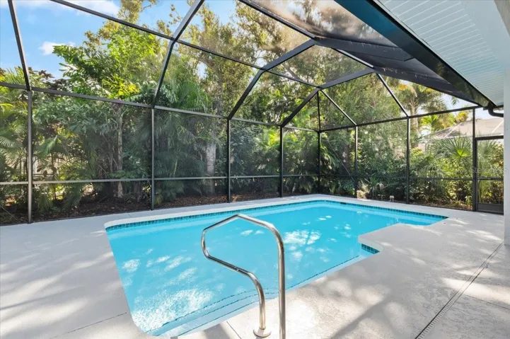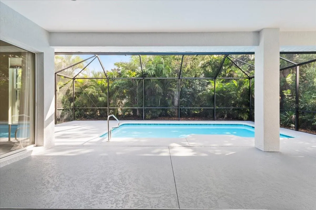 One or more photo(s) has been virtually staged. A Lake of the Woods Beauty! Walk through the double leaded glass front doors of this beautifully maintained J & J–built home which features a remodeled kitchen and updated bathrooms, combining timeless craftsmanship with modern style. Enjoy peace of mind with a BRAND NEW TILE ROOF and a sparkling resurfaced pool—perfect for relaxing and entertaining. With a quadruple pocket sliding glass door from the great room to the pool, your indoor/outdoor space is seamless and oh so inviting! The pool area has an expansive covered deck area as well as plenty of room to lounge in the sun. The pool cage was replaced in 2025 and there is an outdoor shower as well. Don’t miss seeing the outside entrance to a bonus air-conditioned workshop, craft room, art studio, or storage area that is accessible from the pool area. Details like crown molding and luxury vinyl plank flooring complete the interior and make this home “move-in-able”. Located in a desirable community known for its mature landscaping and convenient access to shopping, dining, and top-rated schools. Lake of the Woods also has a clubhouse, pickleball and tennis courts and a community pool as well as lakes for residents to cast a line! No CDD fee and reasonable HOA fees make this a fabulous place to call home, and it’s only 5 miles to downtown Wellen Park or 6 miles to the Wellen Park Cool Today Stadium! There is a well for lawn irrigation with a BRAND NEW PUMP!