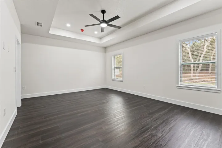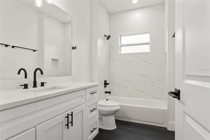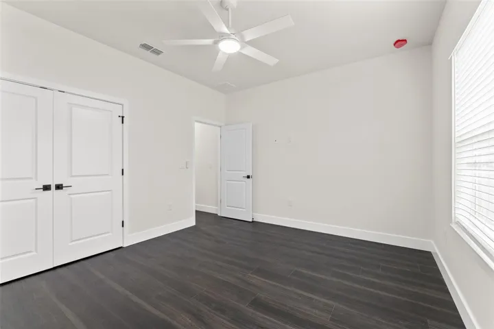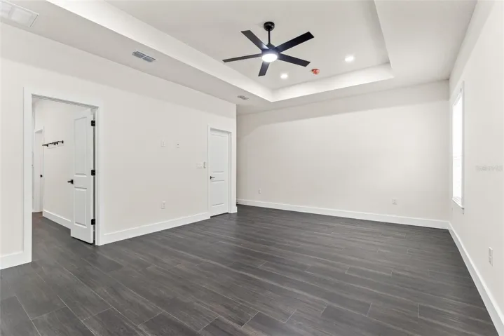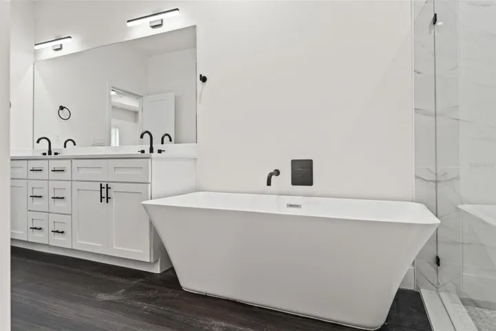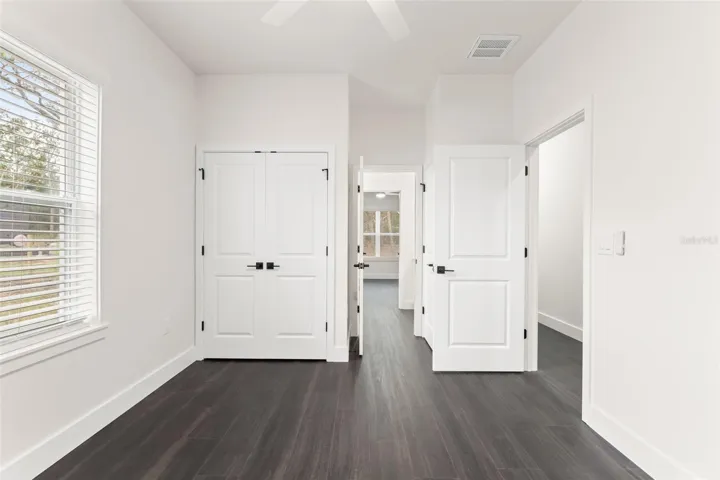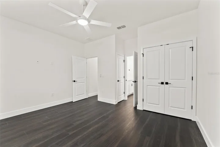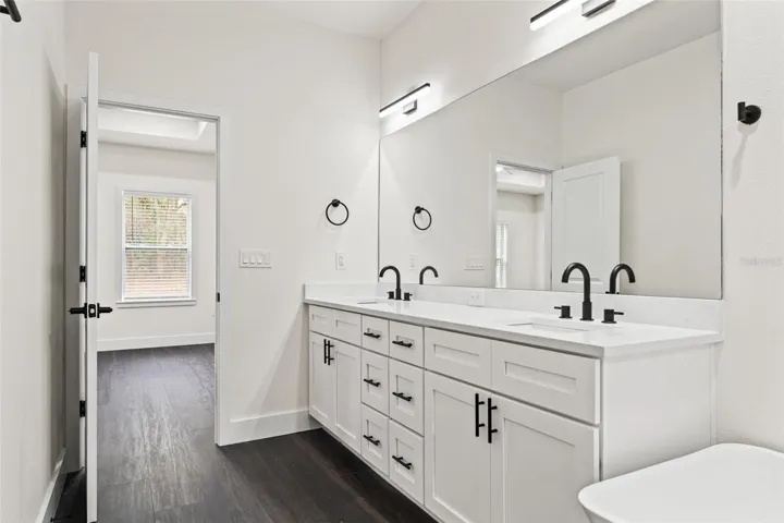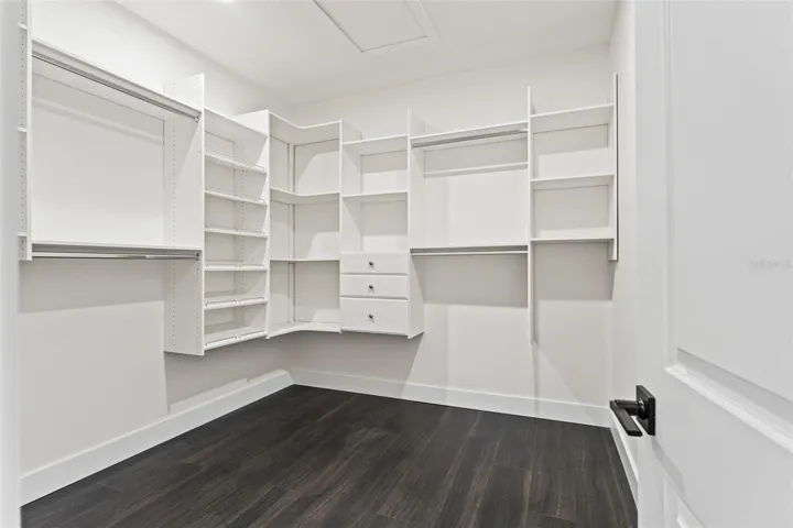 The massive Primary Suite is a true retreat, offering an oversized bedroom and an enormous walk-in closet outfitted with a custom California-style shelving system. The spa-like Primary Bath includes a soaker tub, walk-in shower, and dual vanities for comfort and convenience.