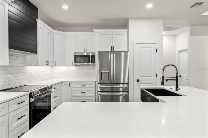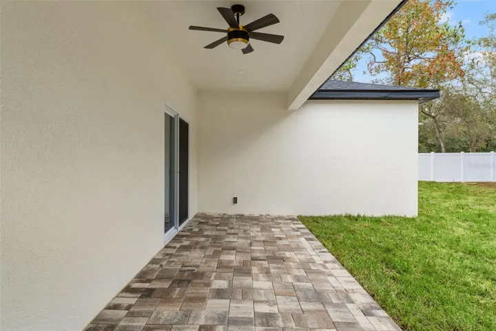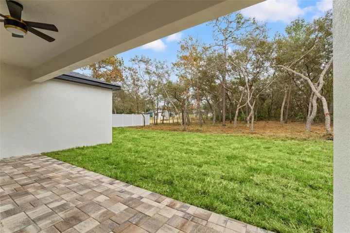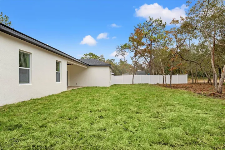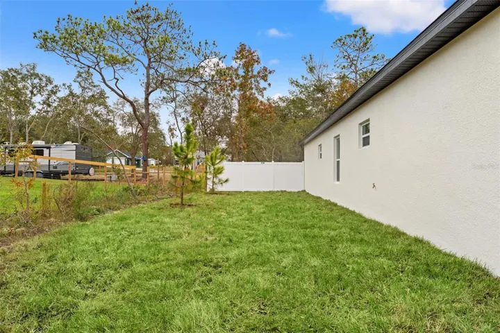 Outside, enjoy nearly half an acre of peaceful, park-like surroundings with upgraded Florida-friendly landscaping and a Rain Bird smart irrigation system with micro-drip lines to every plant and tree in the landscape package. The fenced backyard features a brand-new 6-ft white vinyl privacy fence, perfect for pets, play, or unwinding in total seclusion.