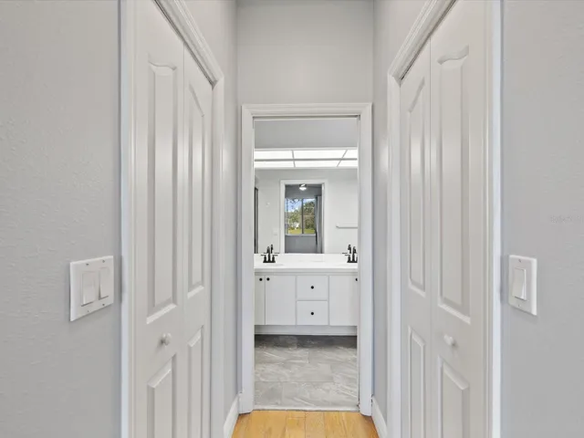 One or more photo(s) has been virtually staged. LOCATION. LUXURY. LIFESTYLE. From the comfort of your spacious 13×13 lanai, enjoy a front -row view as golfers tee off on Hole 9 and glide up the fairway on Hole 8. Few homes in Summertree provide a vantage point as captivating -or as serene. This beautifully renovated 2-bedroom ,2-bath home showcases real wood flooring, 2 pristine walk -in showers. a desirable split bedroom plan design, and a thoughtfully crafted kitchen that blends beauty with functionality. The inside utility room adds to the convenience and ease of laundry. Every space reflects care, quality and comfort. Summertree is an exceptional 55+community, celebrated for its active lifestyle and resort-style amenities. The newly renovated clubhouse features a heated pool, billiard room, card, computer, library, arts and crafts. The clubhouse has a full calendar of dances and social activities. The community is impeccably maintained and gated, with convenient access to the affordable public golf course. Golf carts are warmly welcomed throughout. A rare blend of elegance, activity and scenic charm with wildlife- this is the home and community you’ve been searching for. Close to beaches, Suncoast Parkway and the new Moffit Center. Hidden Gem of Pasco County!