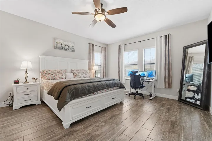 From the moment you arrive, the Mediterranean-inspired elevation, tile roof, stone accents, and pavered drive way set the tone. Step inside and the soaring ceilings, dark wood-look tile floors, and dramatic pocket sliders immediately draw your eye straight to the tree-lined conservation beyond. The main living area flows effortlessly into a generous dining space and a chef’s kitchen outfitted with quartz counters, custom cabinetry, GE Profile appliances, and upgraded fixtures. The first-floor primary suite feels like its own private retreat with tray ceilings, serene nature views, dual vanities, quartz counters, a sunken garden tub, walk-in shower, and a custom closet designed to impress. Upstairs, a bedroom, full bath and large bonus room create the perfect hangout zone—ideal for movie nights, guests, or a 5th-bedroom conversion.