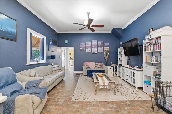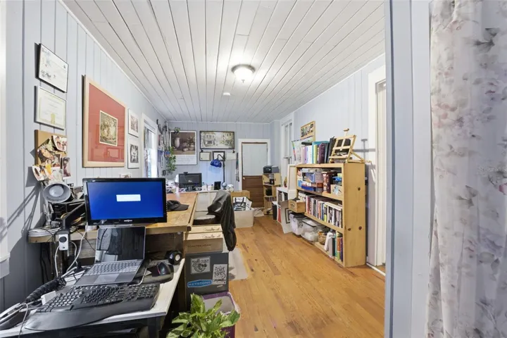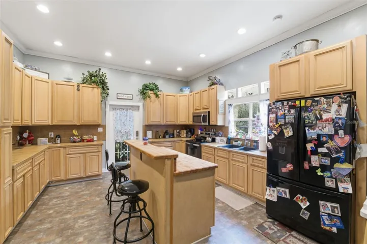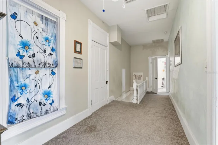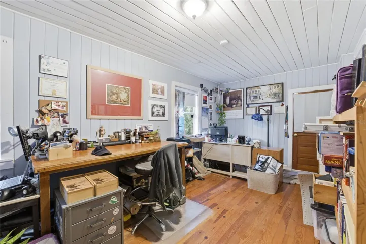 Stepping onto the wraparound porch shaded by mature trees, you’re immediately welcomed by the peaceful, park-like atmosphere that surrounds this charming two-story home set on a generous 0.41-acre lot. The enclosed sunroom invites you in with its wood paneling, warm natural light, and views of the landscaped front yard, guiding you into a foyer lined with rich wood flooring that leads toward the heart of the home. To the right, the living room feels instantly comforting with tall windows framing the greenery outdoors and a gas fireplace that anchors the space, flowing seamlessly into a bright dining room accented by elegant trim and another fireplace that adds charm and continuity. Moving deeper into the home, the first-floor bedroom offers quiet flexibility, while the nearby bathroom showcases classic tilework and a step-in shower. Toward the rear, the family room opens up with high ceilings, smooth patterned flooring, and an easy connection to the spacious kitchen, where generous cabinetry, wide counters, a central prep island, and a bar area create the ideal setting for daily living and memorable gatherings. Upstairs, a soft-toned hallway leads to multiple bedrooms, including a welcoming primary suite filled with natural light from twin windows and direct access to an adjoining area that connects to a covered balcony. Another second-floor bedroom features wood flooring and a gas fireplace, while the remaining bedroom offers a spacious layout with carpet and its own balcony access, perfect for enjoying fresh air and quiet views. Outside, a covered porch overlooks the rear patio, which connects to the laundry area and provides a pathway to the in-ground pool privately enclosed by fencing, while the expansive backyard includes concrete sections and storage sheds, offering both function and room to enjoy the outdoors. Living here places you close to notable local attractions such as Tom Varn Park, known for its sports fields, playground, and shaded walking trails; Hernando Park, which hosts community events, green space, and a splash pad; and the historic Brooksville Downtown District, where charming shops, cafés, and local landmarks create a vibrant place to explore.