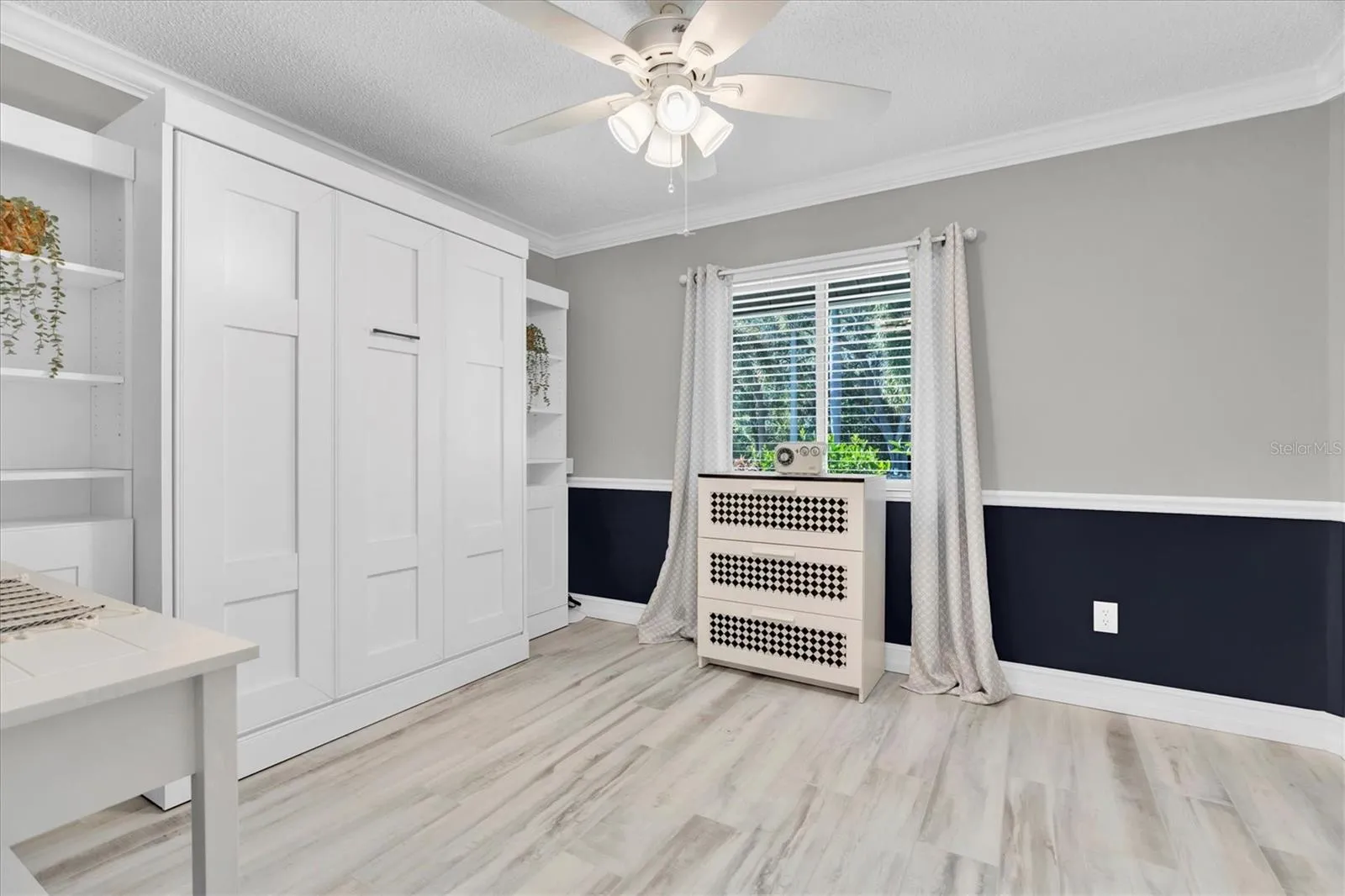 This home is packed with valuable upgrades including a water softener, whole-home generator transfer switch, security system, gutters, hurricane-rated windows, a hurricane-rated garage door, and hurricane shutters. The fully tiled garage offers custom built-in cabinetry for maximum organization.