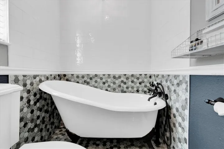 The light-filled primary suite features walk-in closets and a fully renovated en-suite bathroom, while the updated secondary bathroom adds charm with a clawfoot tub. Solid interior doors throughout the home add quality and durability.