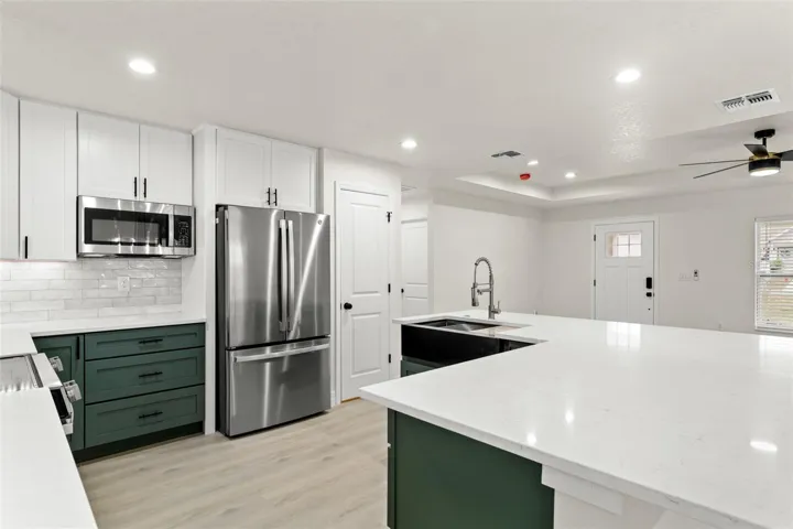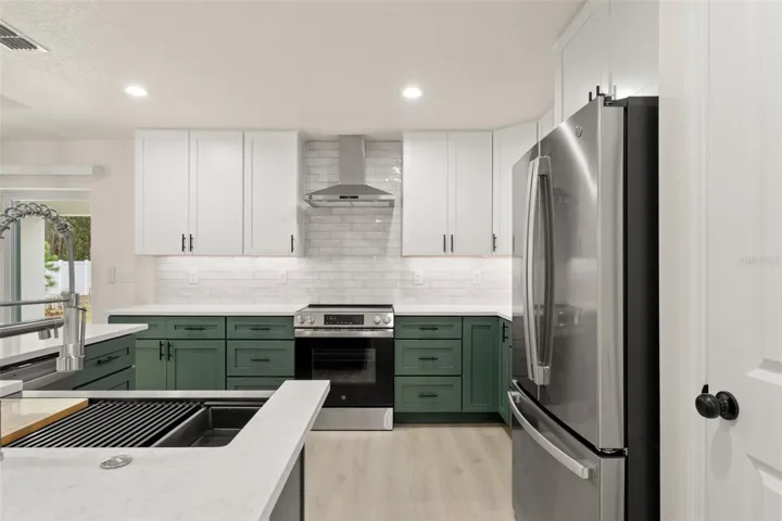 Step inside and you’ll immediately notice the elegance of the luxury vinyl plank flooring with zero transitions, spacious open living areas, and designer finishes throughout. The chef’s kitchen stands out as a centerpiece of the home, offering custom soft-close wood cabinetry with LED undermount lighting, quartz countertops that are carried through every space, upgraded stainless steel GE appliances, and a thoughtful layout ideal for cooking, hosting, and daily life. Even the garage adds another layer of quality with epoxy floors and fully finished walls.
