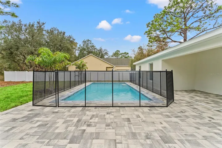 Outside, enjoy classic Florida outdoor living with a sparkling in-ground pool and a massive sealed paver deck overlooking a park-like backyard. The nearly half-acre homesite is enhanced by upgraded Florida-friendly landscaping, a fully irrigated yard supported by a smart Rain Bird system with micro-drip lines to every plant and tree, and a brand-new white vinyl privacy fence that adds both beauty and seclusion.
