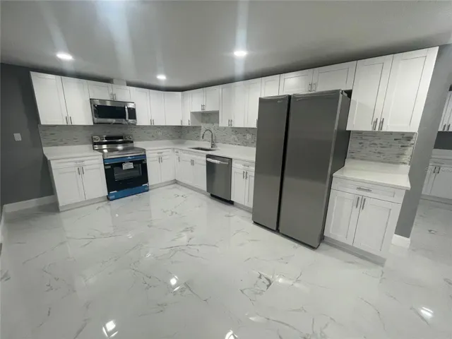 UPDATED BRIGHT HOME, CORNER LOT, WITH 3BR/2 BATH/2 CAR GARAGE, OFFICE/BONUS ROOM, BAR AREA AND RV OR BOAT PATH. An excellent location in a well-established family neighborhood. As you approach the home you will see the specious foyer, leading you to an elegant front door. Step into the house and see a generous living/ dining Room area, a perfect space for gatherings and entertaining guests. To your front it is the bonus/office room that gets you to the back enclose with windows Lanai, An ideal retreat just waiting for you with access to your RV or boat path and the backyard and to the left it is the beautiful kitchen with new cabinets, modern quartz countertops and backsplash, new stainless steel appliances, and next to it the bar and thrid bedroom and then an open dining room for delightful meals and celebrations. From the entrance to your right the updated guest bathroom with new shower tile top to bottom, a new modern shower fixture, and a new vanity with a quartz top. From the kitchen you access the garage recently painted flooring and good lighting enabling you to use the spaces as a man cave or playroom! And the second bathroom with new shower tiles, a new modern shower fixture, and a new vanity. The house contains LED lighting fixtures and exceptional ceramic tile flooring with 5″ floor molding trim all over the house, a combination hard to find in a house today also Throughout the house are new 6-panel doors. Recently painted interior, exterior…And much more! The house is located at walking distance to shopping stores too! ROOF INSTALLED IN 2025, AC SYSTEM 2021, PUBLIC SEWER, NO HOA, NO CDD, NO FLOOD INSURANCE REQUIRED!! Come see it before it gets under contract !! PROFESSIONAL PICTURES COMING SOON!