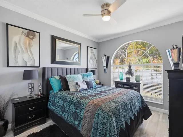 CURB APPEAL & OUTDOOR LIVING! From the moment you arrive, this home captivates with its professionally landscaped grounds featuring a magnificent Bismark palm, mature queen palms and Robellini palms. Along the side of the home, elegant pavers create a perfect setting for evening relaxation around a firepit, while the backyard unfolds into a true oasis overlooking a tranquil pond-an ideal backdrop for peaceful mornings and unforgettable sunsets. RESORT STYLE POOL AND LANAI. The resurfaced salt water solar pool is the centerpiece of the outdoor living space, perfectly positioned to take in serene pond views. New French doors open the home to the outdoors to a 12×28 lanai, creating an effortless indoor-outdoor flow that is perfect for entertaining or everyday enjoyment. INTERIOR LAYOUT & LIVING SPACES- Upon entering, you’re welcomed by a gracious foyer leading into a quiet living room, for reading and relaxation. A formal dining room sits just beyond, inviting for family gatherings and special occasions. The home features a split-bedroom plan, providing privacy and comfort. The primary suite, located at the front of the home is a peaceful retreat complete with a fully remodeled en-suite. At the heart of the home is a gourmet, eat-in kitchen, thoughtfully remodeled and designed for both beauty and function. Crown molding enhances the space while the open plan flows seamlessly into the family room, which enjoys expansive views of the pool and the pond. Two additional rooms are located on the opposite side of the home. One has been transformed into an extraordinary walk-in closet, with boutique -style storage and is easily a third bedroom. THE GARAGE- A TRUE SHOWCASE! Car enthusiasts and hobbyists will appreciate the three-car garage, equipped with a split A/C unit for heating and cooling, allowing it to be a man cave or she cave. A pull-down garage screen adds versatility, and new garage door openers complete the convenience. MORE UPGRADES- hot water tank, commodes, light fixtures, ceiling fans, water softener! This exceptional home has luxury, functionality, and resort style living in every detail. With its breathtaking outdoor spaces, extensive upgrades and thoughtful layout, this is truly a home that must be seen to be believed.