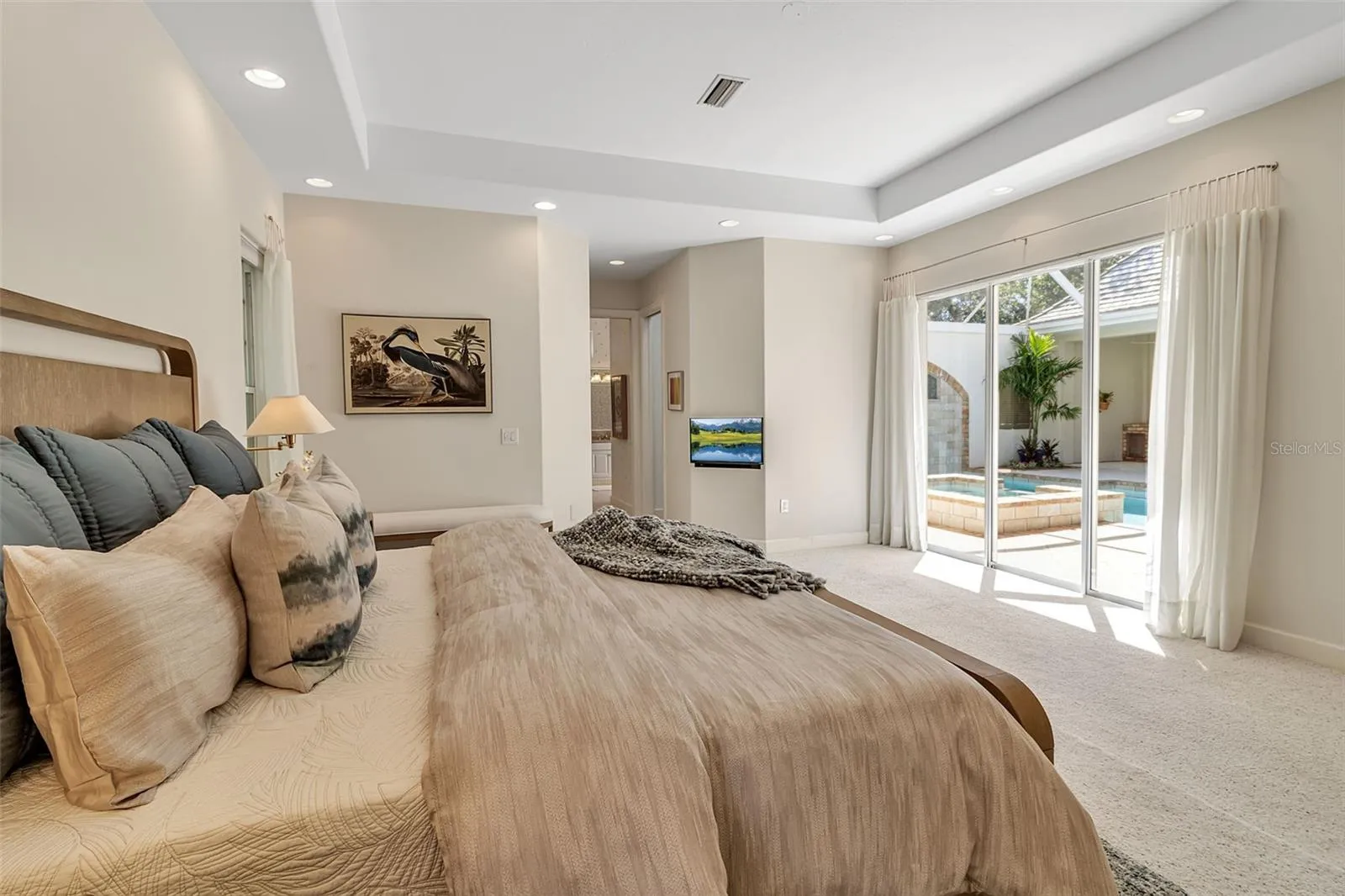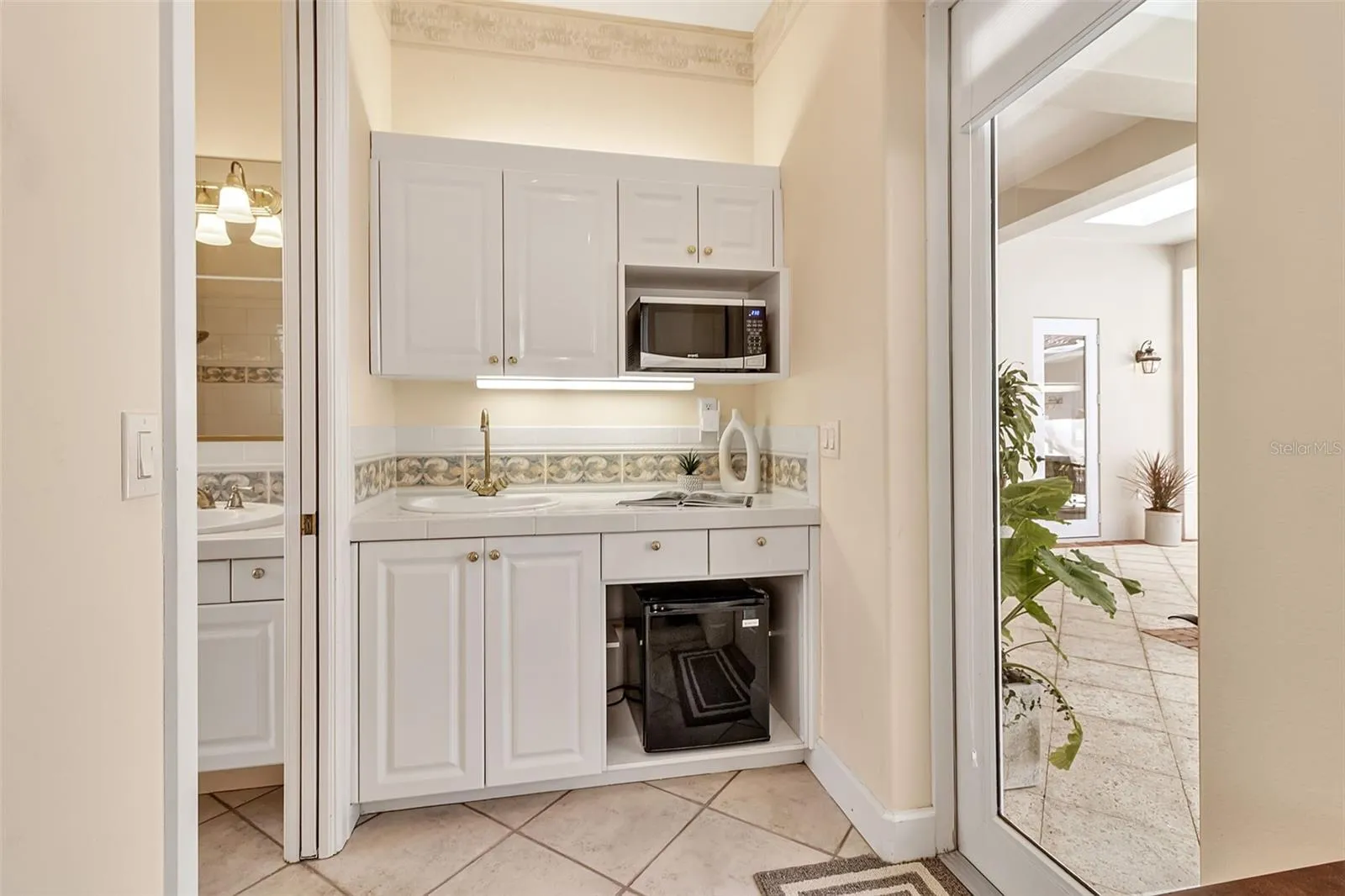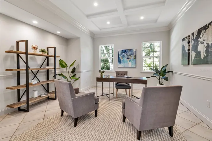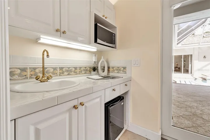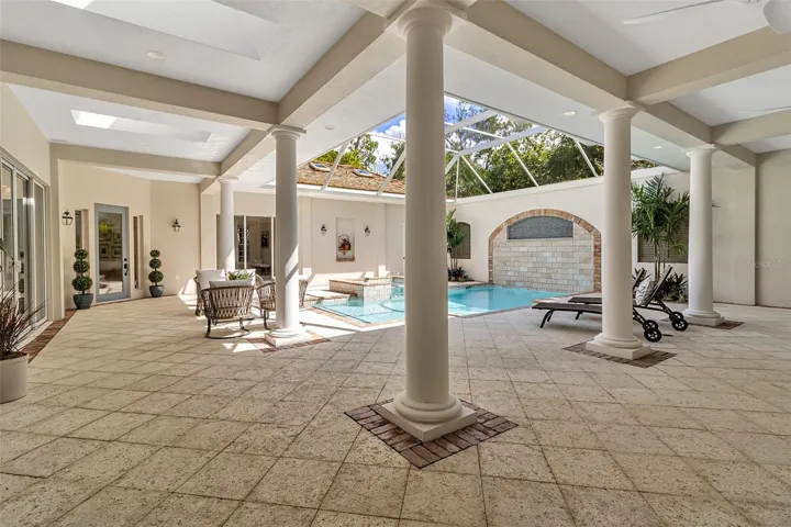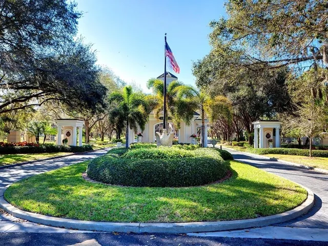 Although built in the 20th century, this home looks as authentic as the French manor house it was modeled after. The façade features a soft, light-colored stucco exterior accented by rustic stonework, creating a warm and inviting presence. Gracefully arched windows and classic dormers enhance the wooden shingle roof, which is crowned by two stately chimneys that add to the home’s old-world charm. A gently curved brick-bordered walkway leads through a beautifully landscaped front yard, where manicured shrubs and vibrant flowering plants frame the path to the entrance. Bathed in sunlight under a clear blue sky, the entire scene feels like a serene countryside retreat—refined, welcoming, and effortlessly picturesque. In the main house, you’ll find high ceilings throughout, two bathrooms, three bedrooms, a formal dining room, and a large, dedicated office. Separate from the main home is a large, one-bedroom casita with a vaulted ceiling, full bath, kitchenette, and room for a workspace. The huge, fully-screened, 1,000 SF courtyard is beautiful with a vaulted pool cage, pool with built-in waterfall and a spa, and both sunny and shady areas perfect for morning coffee, lunch, or evening cocktails. This home has everything to serve your needs, including those of multigenerational living and visiting guests. Step inside this courtyard style home and you will be greeted by a lovingly maintained, spacious, open floor plan interior. The high ceilings, skylights, and doors surrounding the courtyard ensure that every inch of the home is filled with light. The kitchen features a wide expanse of countertops including two sinks, a range with an ultra-quiet external fan range hood, and a dishwasher. Surrounded by maple cabinetry and including a built-in microwave and refrigerator, this space will bring the joy of cooking to a chef of any level. The master suite is huge and features two walk-in closets, and an incredible bathroom with clerestory windows, dual sinks in the main area of the bathroom and one in the water closet, a jetted tub and a separate walk-in shower. The two guest bedrooms within the main part of the house are good sized, and there is a large laundry room with a utility sink and new washer and dryer. Add to this all the practical features of A NEWER ROOF, IMPACT EXTERIOR FACING WINDOWS, RECENTLY REDONE POOL SURFACE AND EQUPIMENT, AND A 2 CAR GARAGE WITH TONS OF STORAGE SPACE, and you have everything you need to live an incredible lifestyle in The Oaks Bayside. Membership in The Oaks Club, Sarasota’s premier golf and country club, is mandatory with homeownership.