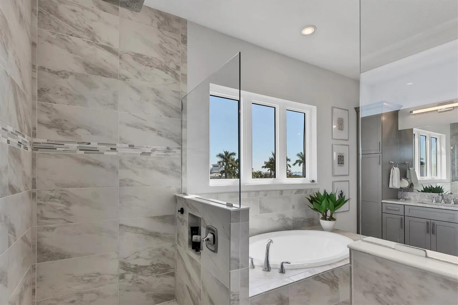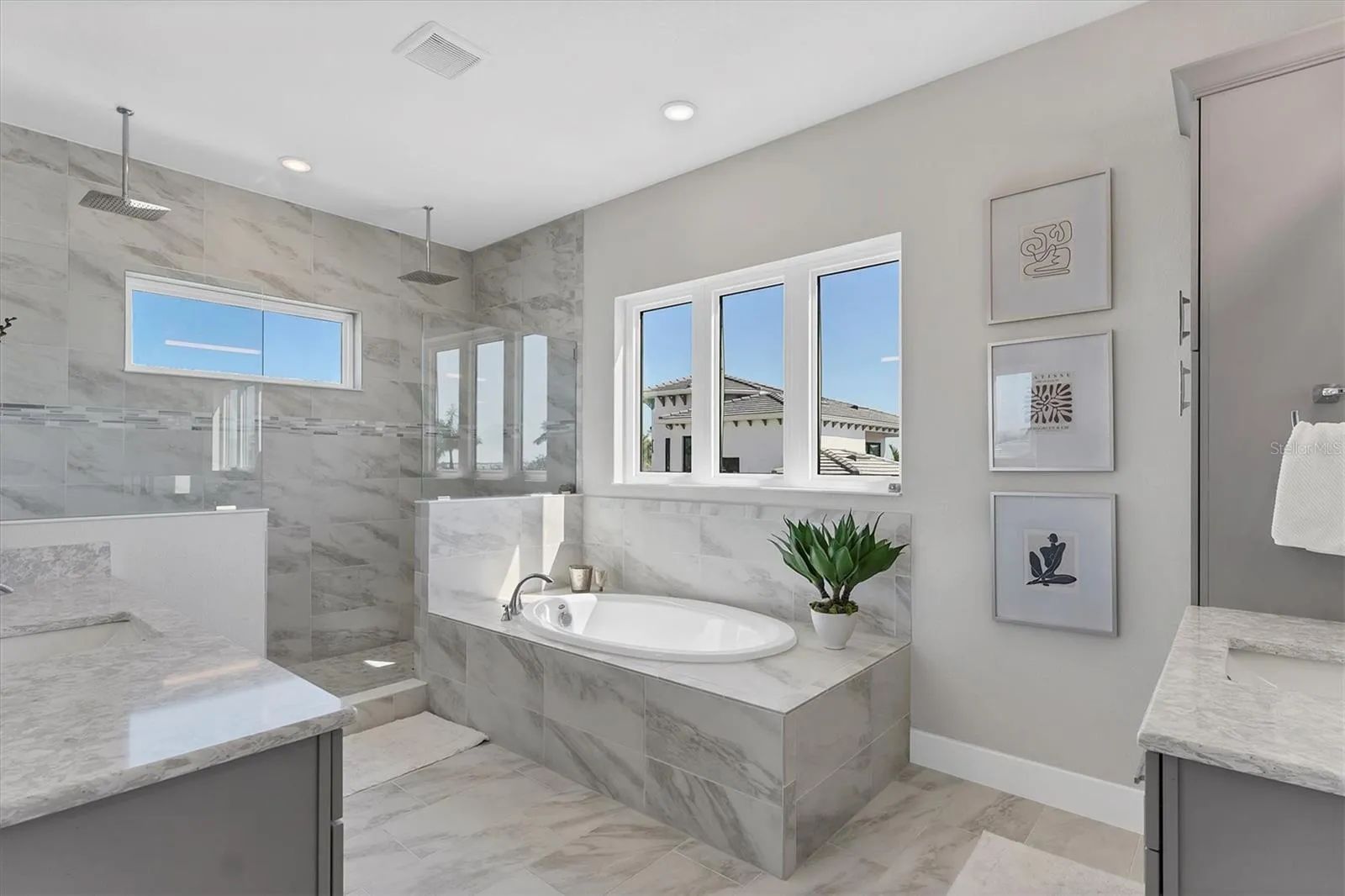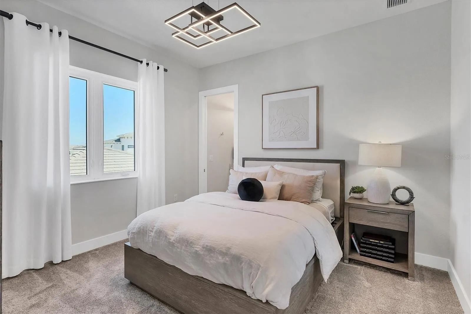 Amazing 2023 built 4 bedroom,. 4 full bathroom, plus home office and 2nd floor loft, 2 car garage, and beautifully TURNKEY FURNISHED. Different than the rest in that it is Furnished, plus Sarasota Bay views from Master bedroom, plus single story completed homes on both sides which is privacy and not looking into others homes, plus loads of nice interior upgrades. All four bedrooms have walk-in closets, three of the bedrooms are upstairs and three of the bedrooms are ensuite. The pool is heated with salt chlorinator, lanai has gas bbq built in, string lights for great ambiance, and outdoor furniture. Home office has glass barn doors and nice custom built in shelving/cabinets. Kitchen has 7×7′ island, gas cooktop with vent, instant hot water at sink, stainless steel Samsung appliances, and wine refrigerator. Master bedroom has balcony, large walk in closet with custom shelving, Master bathroom has enormous walk in shower with dbl rain sprays, two large vanities with built in cabinet, and garden tub. Garage has epoxy flooring and storage shelves. This house also offers several step ceilings, custom window drapes, storage closets, all IMPACT windows and sliding doors. Aqua Lagoon is GATED, golf cart ride to IMG Golf Club, minutes from Detwiler Farm market, Public, Target, and IMG Academy. HOA fee includes lawn care, wifi, cable, community pool, gate.