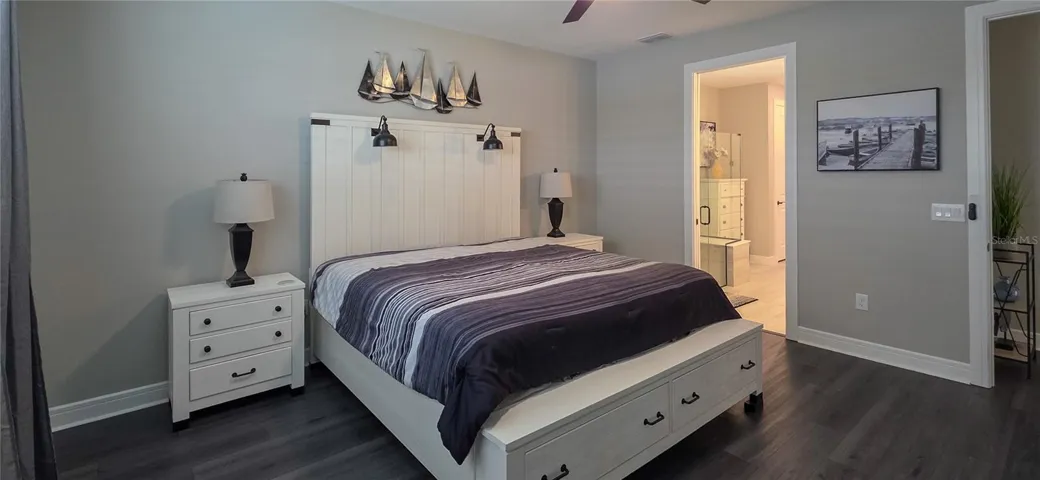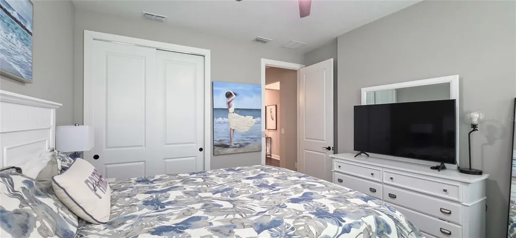 Every detail in this home has been thoughtfully curated for style and function. Enjoy plantation shutters, electric roller shades on patio sliders, ceiling fans in every room, and custom built-ins in closets and the laundry room. The primary suite features a custom master closet system, so organization is effortless.