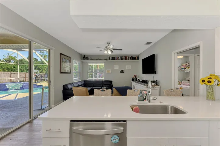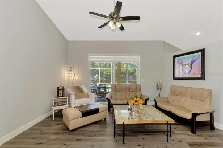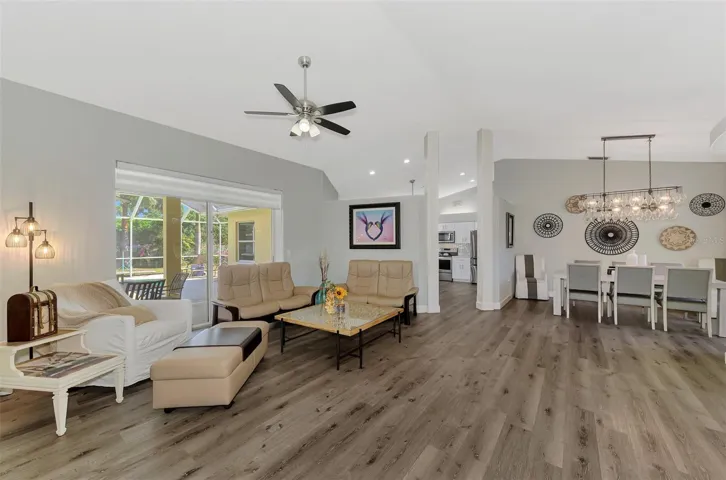 Beautifully updated 4BR/2BA pool home in the sought-after Bay Oaks Estates community of Osprey. This single-story residence’s backyard borders the Legacy Trail and includes a private gate for direct trail access. Inside, high ceilings and natural light complement luxury vinyl plank flooring, fresh paint, new doors, baseboards, and fixtures. The kitchen features quartz countertops, marble backsplash, recessed lighting, an undermount sink, and newer Whirlpool appliances. A split floor plan provides privacy with spacious bedrooms, including a primary suite with lanai access, two closets (one walk-in), and a spa-like bath with soaking tub, walk-in shower, and dual quartz vanities. The screened lanai overlooks an inviting pool and spa with a private, tree-lined backdrop. Other highlights include a dedicated laundry room, 2-car garage with new door and opener, newer roof, A/C, and water heater. All improvements and system updates completed in 2020. Last year, the pool was resurfaced and the waterline tile replaced. Additional upgrades include new pool equipment, a saltwater system, and a heater. Low HOA and no CDD. Conveniently located near top-rated schools, Oscar Scherer State Park, shopping, dining, and world-class beaches including Siesta Key, Nokomis, and Venice.