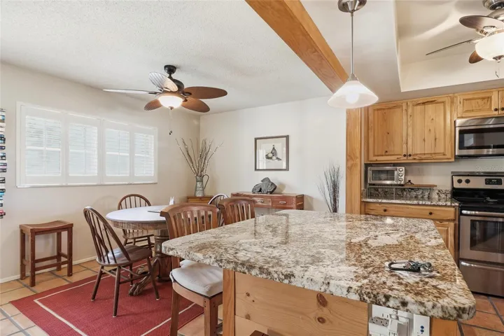 find a tastefully decorated retreat featuring an updated kitchen with granite countertops,
