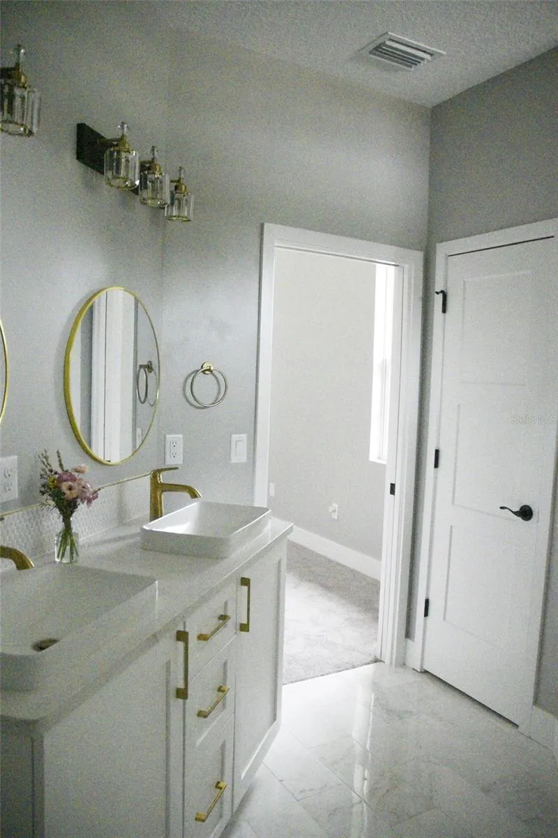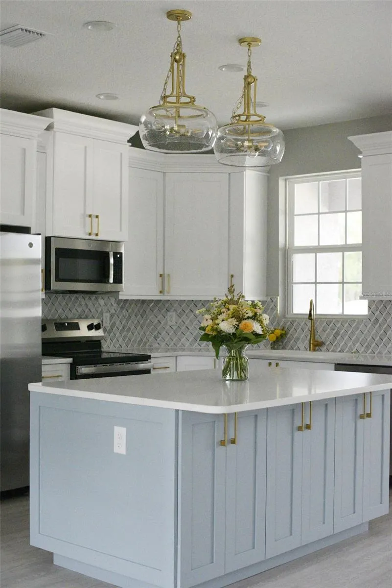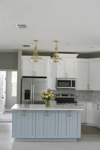 Charming New Construction Home in Marion Oaks – Packed with Upgrades! Welcome to your stunning new 3-bedroom, 2-bath home in the heart of Marion Oaks in Ocala, Florida – Horse Capital of the World! Situated on a desirable corner lot, this beautifully designed home is filled with custom features and upgrades throughout. Step through the impressive 8′ custom 6 panel glass front door into an open, light-filled floor plan with luxury vinyl plank flooring and designer fixtures. The gourmet kitchen boasts GE® stainless steel appliances, quartz countertops, a custom tile backsplash, soft-close solid maple wood cabinetry, and a charming oversized island with additional storage. A stylish laundry room/walk-in pantry combo with floor-to-ceiling shelving and custom cupboards adds extra convenience and smart storage solutions. The primary suite features an oversized closet with solid wood shelving and a cozy alcove, while the spa-like en-suite bath wows with floor-to-ceiling marble tile, a glassenclosed shower, brushed gold fixtures, and double vanities. The guest bath is equally charming with black and white penny tile, upgraded fixtures, and a custom backsplash. Enjoy outdoor living on the oversized back porch and spacious yard, perfect for entertaining. Additional highlights include 3-panel interior doors, an upgraded trim package, Hunter® fans in every room, and an oversized garage. Conveniently located just 30 minutes from the prestigious World Equestrian Center and charming downtown Ocala, 40 minutes from Silver Springs State Park, and an hour from Disney. Enjoy year-round outdoor activities in this close-knit Florida community! Book your tour today!