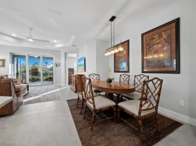 Step into refined Florida living in Windward, where a smart, open layout pairs everyday comfort with easy entertaining. The cook’s kitchen anchors the home with soft-close cabinetry, under-cabinet illumination, oversized sink, and a gas range, flowing seamlessly into a generous great room framed with a coffered ceiling. Durable tile floors in main living areas and Luxury Vinyl Plank flooring in bedrooms and den, complemented by upgraded lighting, and 8′ interior doors all provide for a clean, elevated feel.
