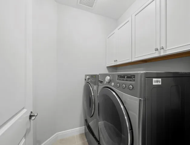 Outdoor living shines: relax on the extended, screened lanai with pavers and ceiling fan, taking in treed scenery with a water view—perfect for morning coffee and evening cocktails. It’s plumbed with a dedicated gas line for grilling, and rear/front hose spigots for everyday convenience. And everyday living is made easy with a spacious laundry room and a two-car garage with a utility sink. Other thoughtful updates include added insulation in the exterior block walls and garage doors, closet organizer systems, and window tint for efficiency.