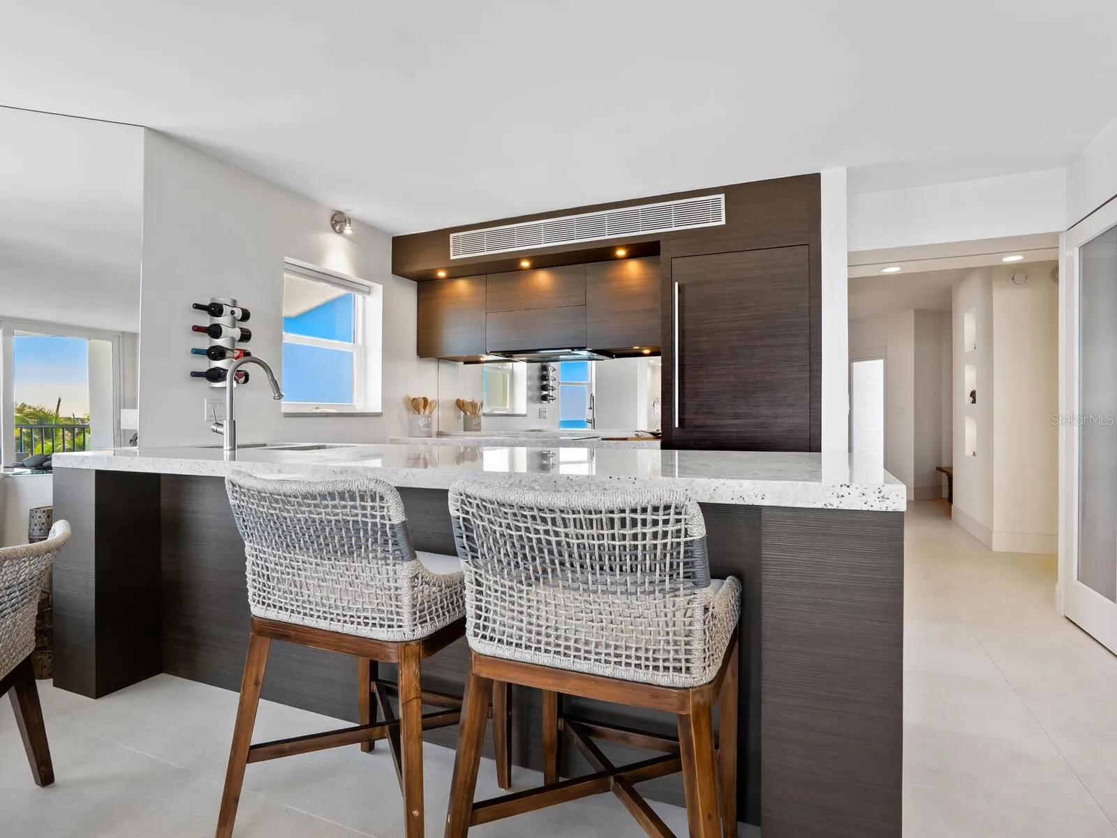 Experience Gulf-front living at its finest on beautiful Lido Key. This turnkey furnished residence offers breathtaking, direct views of the Gulf and unforgettable sunsets from the living room, dining room, balcony, kitchen, guest bedroom, and owner’s suite. Thoughtfully rebuilt throughout, it features hurricane-rated sliders and windows, a modern kitchen with stone countertops and wood cabinetry, and updated bathrooms with stylish finishes. The owner’s suite overlooks the beach and includes a double vanity area for added comfort and a large walk-in shower. Additional highlights include elegant tile flooring, a breakfast bar, and a casual dining area with Gulf views. A secure under-building parking space and exceptional amenities complete the package, including a beachfront pool, clubhouse with kitchen, and 24-hour security. Perfectly situated near world-class shopping, dining, and lively tiki bars, this is the ultimate coastal retreat.