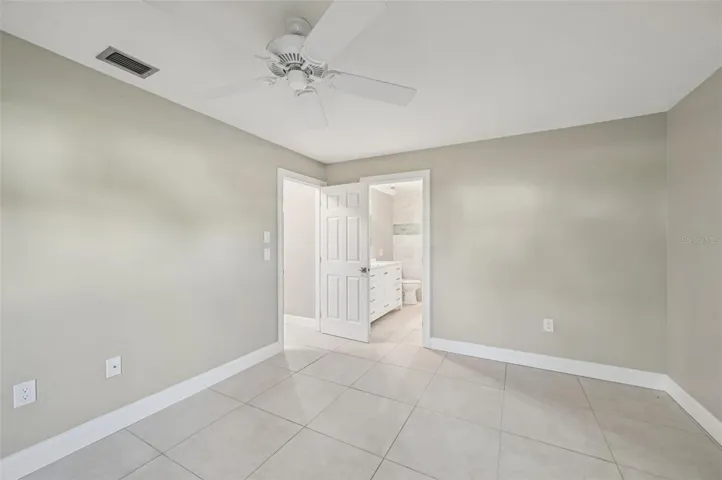 The spacious primary suite includes a large walk-in closet with a makeup vanity and its own private patio. A second patio off the main living area creates an inviting space for outdoor lounging or dining.