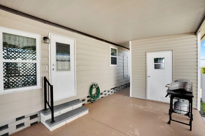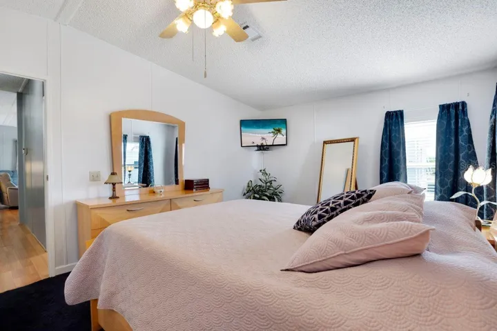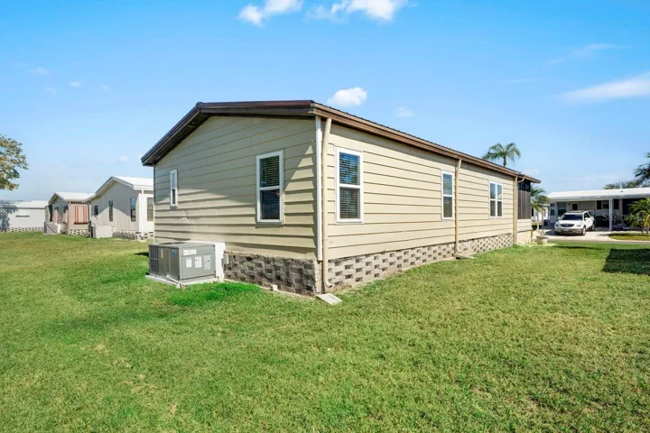 This well-maintained FURNISHED home is the perfect blend of comfort, affordability, and 55+ WATERFRONT COMMUNITY living! Create your tropical lifestyle at this turnkey furnished 2-bedroom, 2-bathroom home located in the resident-owned community of Harbor Cove. Rent a boat slip for only $100 per YEAR and explore the majestic Myakka River all the way to the GULF! This fresh and super clean interior offers 1,006 square feet of living with the option of enjoying breezes on the screened lanai. The modern updates include hurricane impact windows installed in 2020, new efficient AC unit in 2024, and new metal roof in 2025, Inside, find nicely painted interiors, cathedral ceilings, plenty of storage, plus dishes, bedding, furniture and everything you need to move right in. The bright kitchen has attractive solid-surface countertops, closet pantry and all appliances including a nice range hood, dishwasher and disposal. Savor meals and gatherings with friends in the dining area with its outdoor views provided by multiple windows. Settle into comfortable seating in the living room and bring the outside in with open French doors to the lanai. The screened lanai is elevated and the perfect place for morning coffee or an evening beverage during sunset. The spacious primary bedroom has an ensuite bathroom and walk-in closet and guests have their own space in the spare bedroom with trundle bed. The hall bathroom has a large closet currently used for a small freezer and storage space but also has washer dryer hookups should you want to move them inside from the shed. Harbor Cove offers fantastic amenities including a 90-slip marina with new docks, boat ramp, two pools, a spa, fitness center, bocce, tennis, pickleball, shuffleboard courts, and a two-story clubhouse overlooking the marina. It is easy to stay active here as residents can participate in organized events such as art classes, dances, games, picnics, water aerobics and volleyball, golf cart parades and holiday parties. Landscaped grounds provide opportunities for peaceful wildlife watching and boating enthusiasts will love hopping in the boat for exploring and fishing adventures on the water. This home comes with a Membership Share, voting rights and lawn mowing service. Conveniently located on one of the quieter streets in the neighborhood, it’s just minutes from beaches, restaurants, shopping, farmers’ markets, golf courses, spring training baseball, and quality medical services. Don’t miss the chance to make this your home!