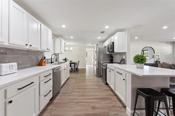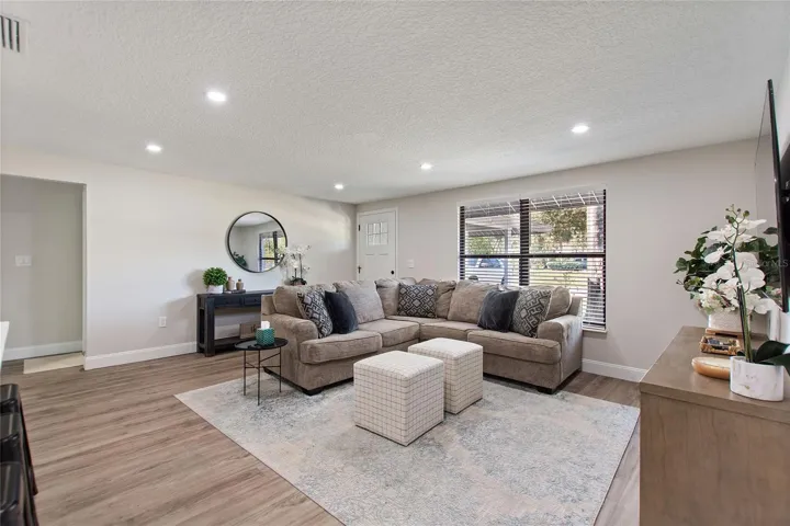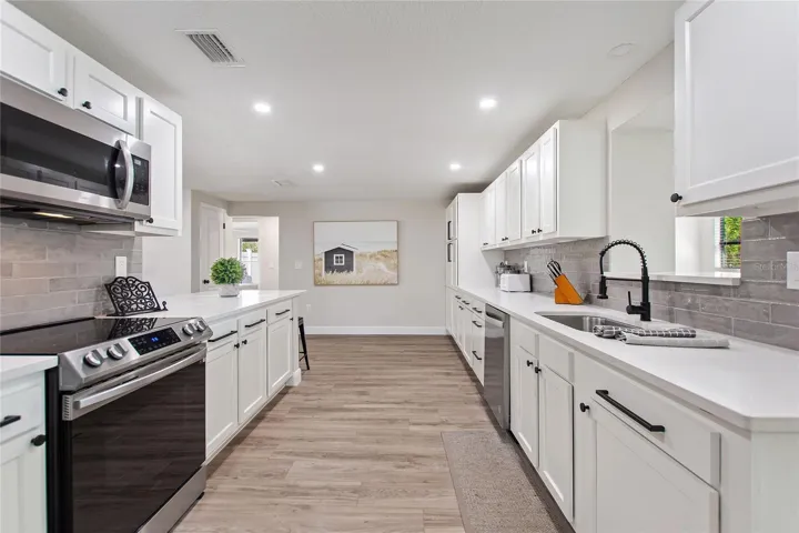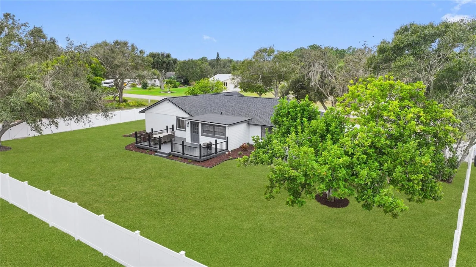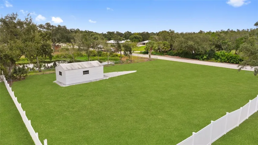 Location, Location, Location! Experience the perfect blend of country charm and modern living in the highly sought-after Racimo Ranches community. Where freedom reigns with no HOA and no deed restrictions! This rare one-acre corner lot features a beautifully remodeled 3-bedroom, 2-bath, 1,739 sq. ft. home with a freshly painted exterior, mature landscaping, and excellent curb appeal. Inside, the spacious living room welcomes you with Luxury Vinyl Plank flooring that flows throughout. The updated kitchen offers shaker-style cabinets, quartz countertops, subway tile backsplash, LED lighting, stainless steel appliances, and a cozy dining area. Adjacent to the dining space is a versatile bonus room—perfect for an office, den, or playroom, overlooking the backyard. Enjoy Florida sunshine while entertaining on the back deck with plenty of seating and room to grill. The split floor plan provides a spacious master suite with an en suite bath featuring a walk-in shower and large closet, while two additional bedrooms share a bright second bath with a relaxing jacuzzi tub. Additional highlights include a two-car garage, brand new roof, new water system, new well and septic, and a detached shed, plus plenty of room to build a guest house or in-law suite, park your boat or motorhome. Enjoy quiet country living just minutes from it all—ride your golf cart to Cooper Creek Plaza restaurants and Publix and take advantage of being less than 3 miles from I-75 and only 6 miles from University Town Center. This move-in ready home offers the best of both worlds: peaceful country living with modern convenience and upgrades! EXTERIOR RENOVATIONS & UPDATES: BRAND NEW ROOF (2025), AC replacement (2022), water softener system installed (2022), iron and sulfur blocker installed (2022), well pumped installed (2024), lift station replacement (2022), and drain field replacement (2022). INTERIOR RENOVATIONS & UPDATES: 2022 full interior renovation with added Flex Room, stainless steel appliances (2022), water heater replaced (2022), washer and dryer (2024), and more!
