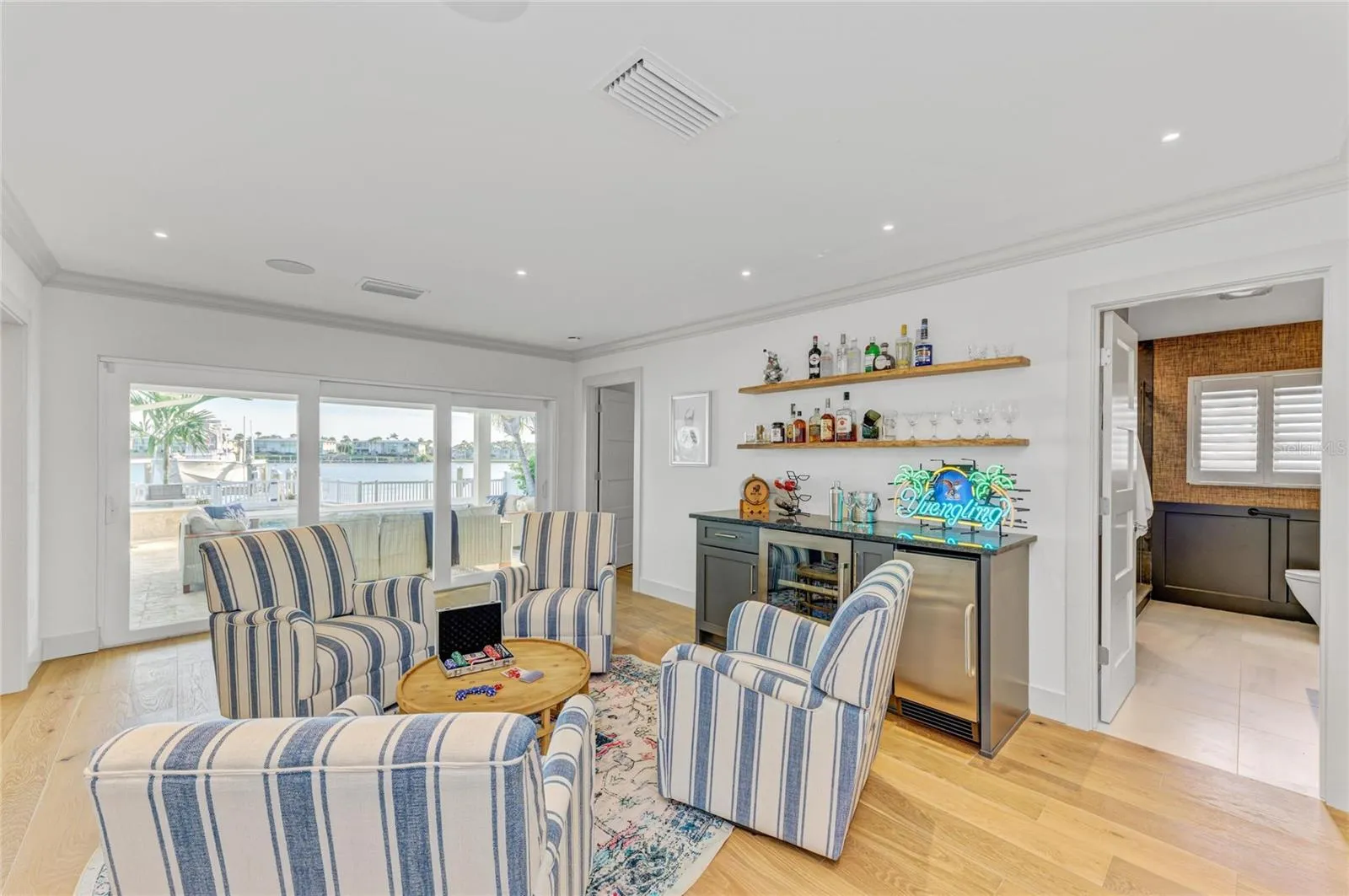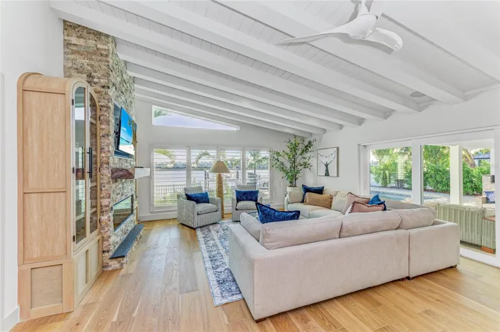 Situated on a tranquil south-facing cove along the Intracoastal Waterway, this property provides both stunning scenery and natural protection. Step inside to an open, airy floor plan featuring all-new wood flooring, new interior and exterior doors, new windows with shutters, and exceptional craftsmanship at every turn.